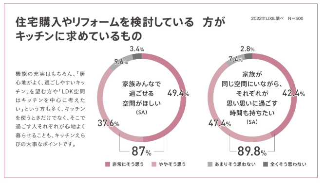 キッチンを使う時だけでなく、そこで過ごす人それぞれが心地よく暮らせることも、キッチン選びの大事なポイントです。