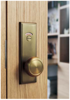 真鍮色のドアハンドルは、ヴィンテージ風の空間をさらに際立たせます。取っ手を丸型にするとドア全体がやさしい印象になります。