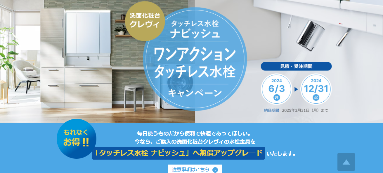 期間中にお見積もり、納品いただくともれなく、タッチレス水栓ナビッシュへ無償アップグレードいたします!
