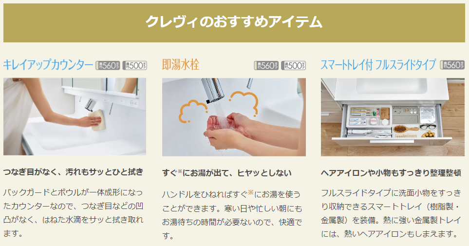 毎日使うものだから便利で快適にしたいですね。お得なキャンペーン期間中にぜひ洗面化粧台リフォームをご検討ください。