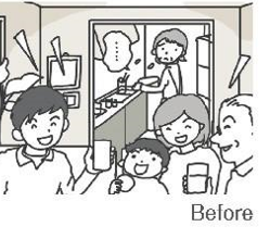 家族みんながキッチンに出入りしやすくなるので、お手伝いや後片付けにも参加しやすくなります。