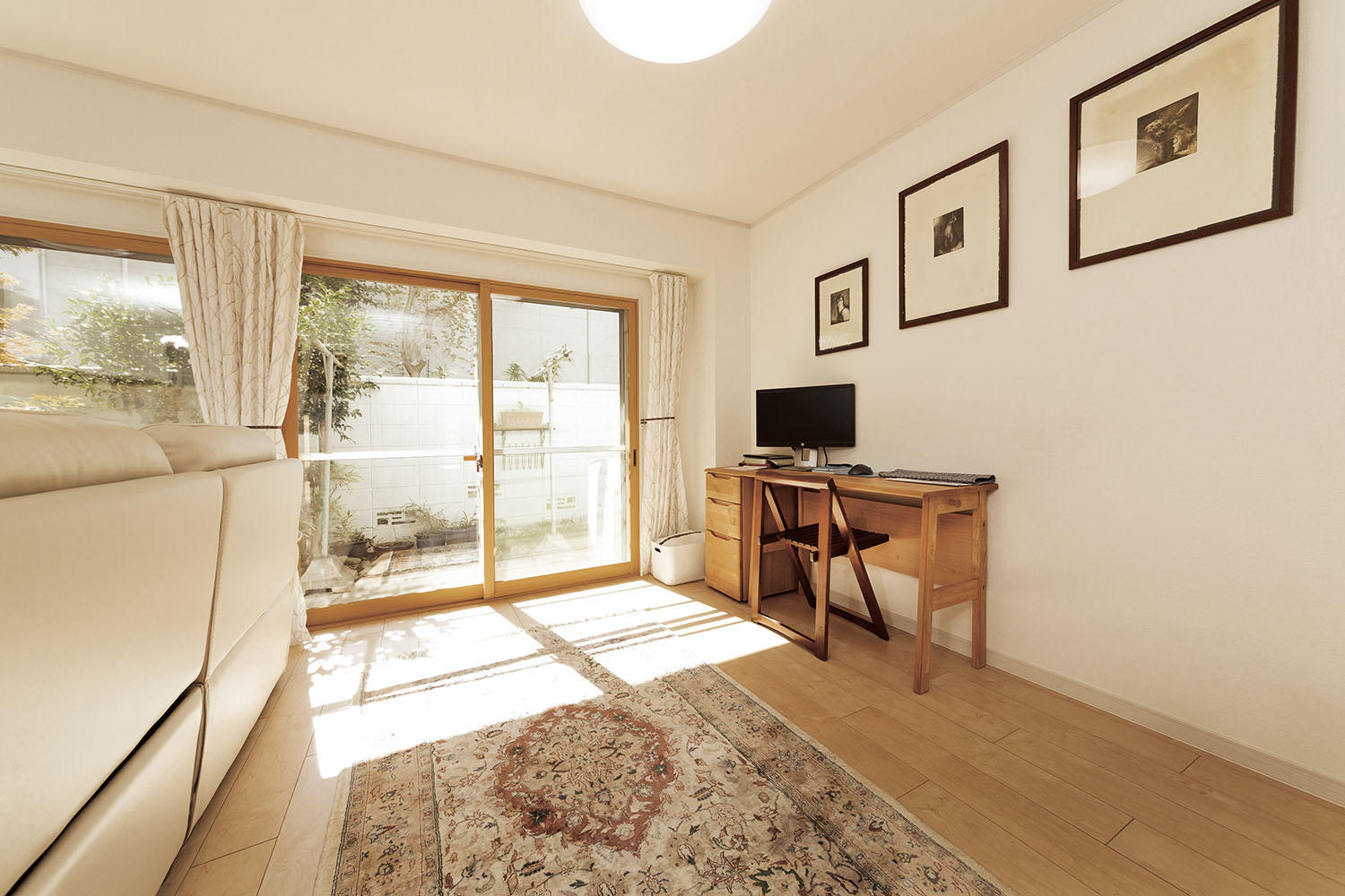 古くて使いにくかった部屋を、快適に過ごせる空間にリデザイン。床には、肌触りの良い無垢材を使用し、壁はグレージュで統一。バリアフリーの設計で、将来的な安心感を確保しました。