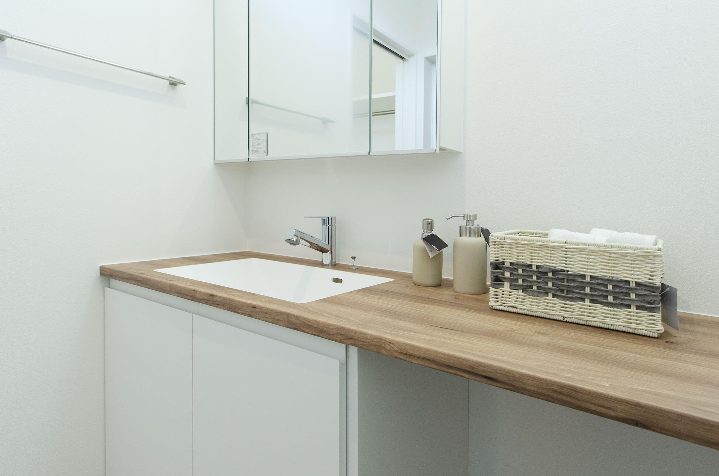 洗面化粧室の雰囲気は、素材選びで大きく変わります。
