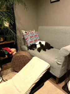 お風呂から出てきたら、さきほど敷いた布団の中心に移動しておられる...