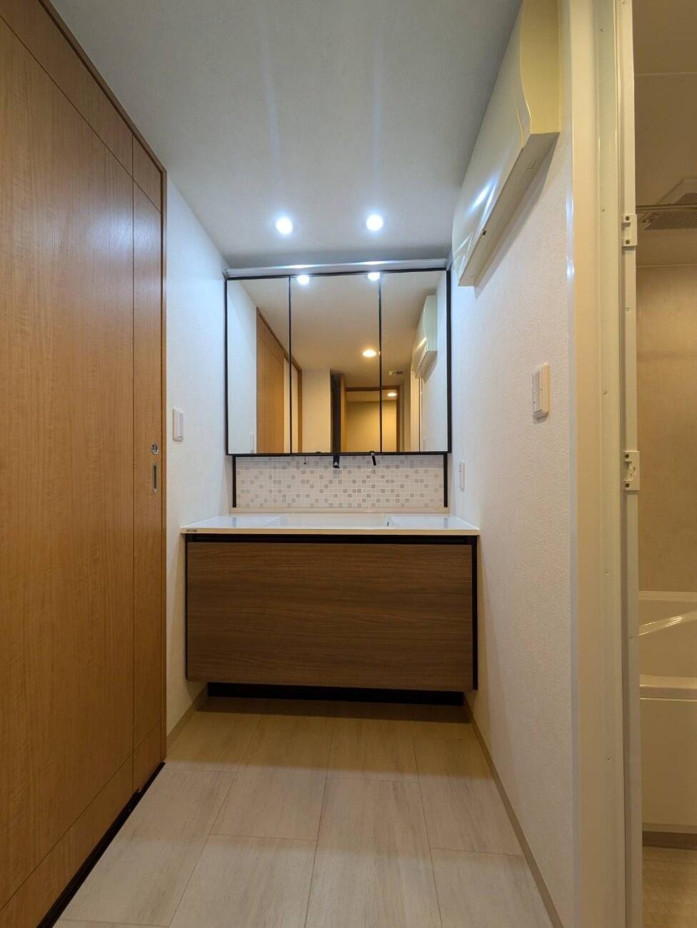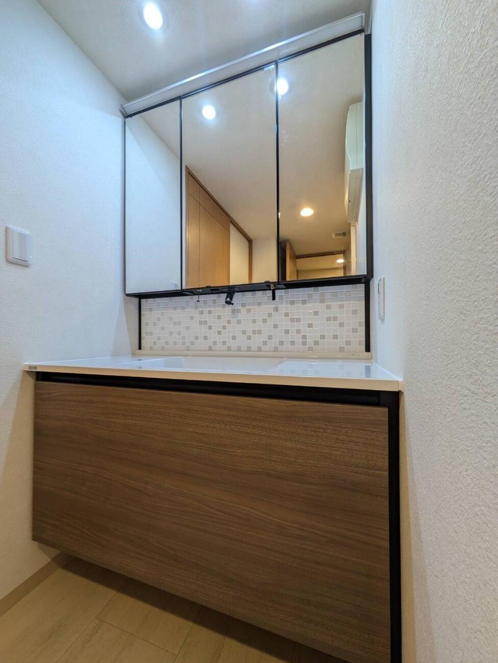 マンションの築20年を迎えたお住まいで、浴室と洗面所のリフォームを実施しました。ウォルナットのアクセントカラーを取り入れ、統一感のある高級感あふれる空間を実現。シンプルで洗練されたデザインと、快適な機能性を兼ね備えたリノベーション事例をご紹介します。