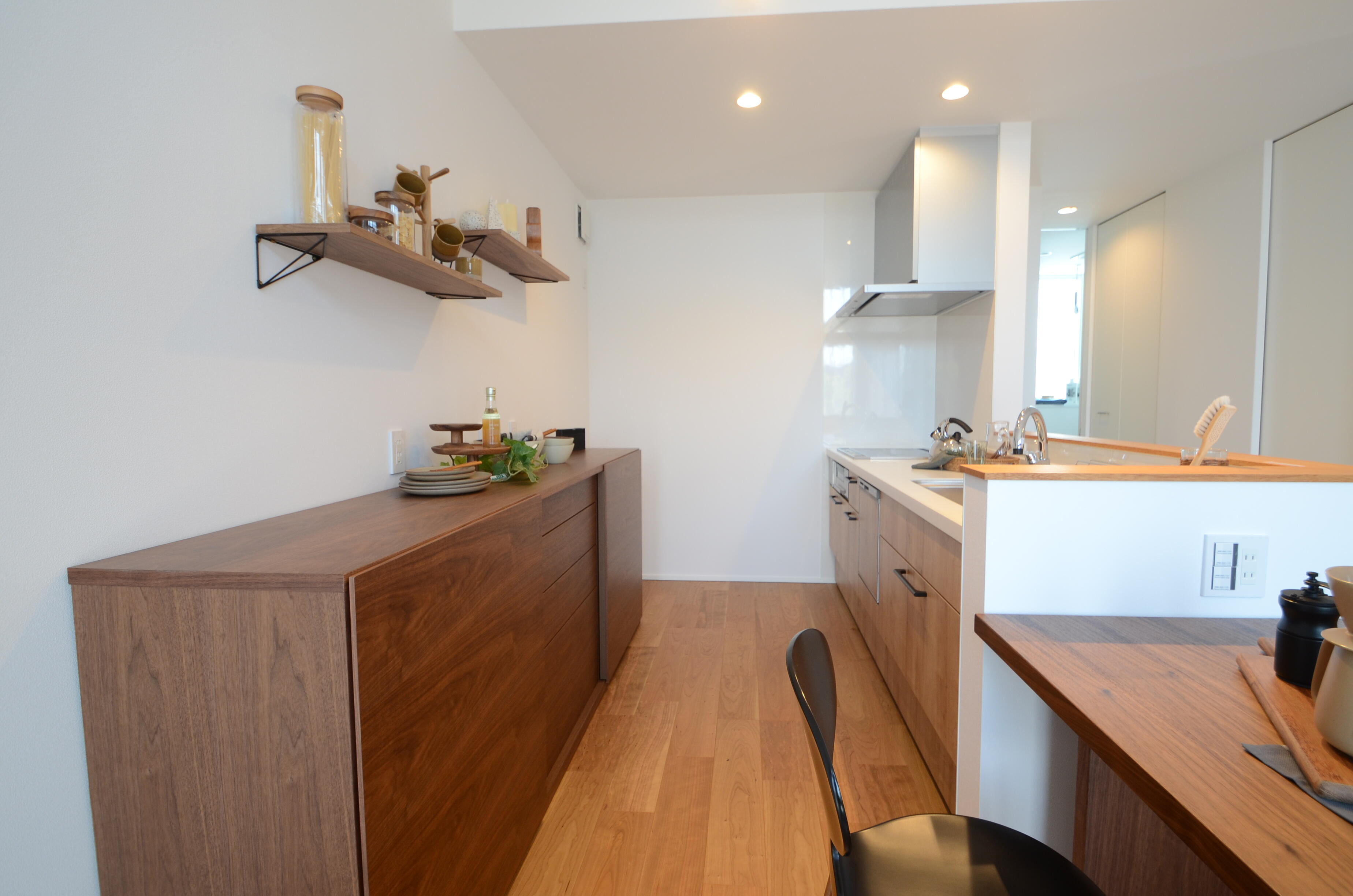 - 木目調やグレートーンのキャビネットで北欧ナチュラルやジャパンディスタイルを演出。