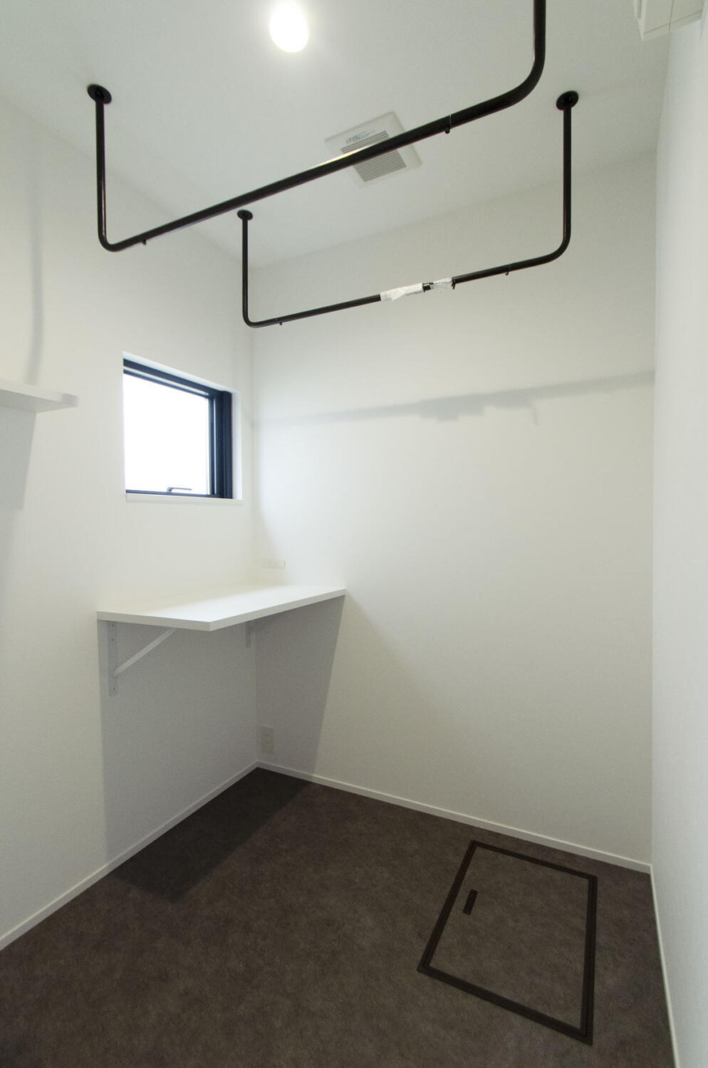 洗濯機の近くに室内干しスペース+ファミリークローゼットを設置。