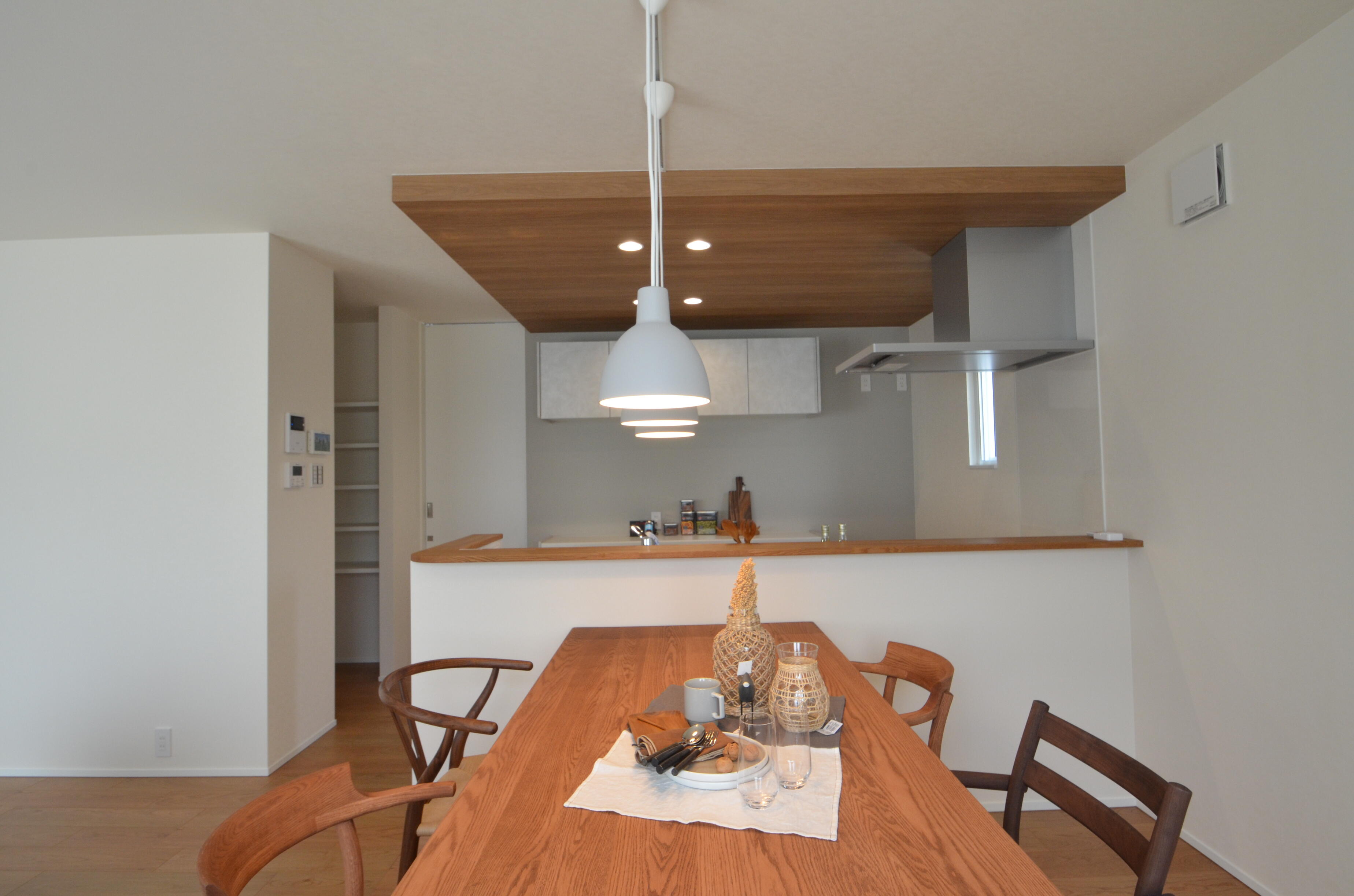 お気に入りの照明や木目の扉材を組み合わせれば、空間全体が温かみのあるナチュラルな印象に。