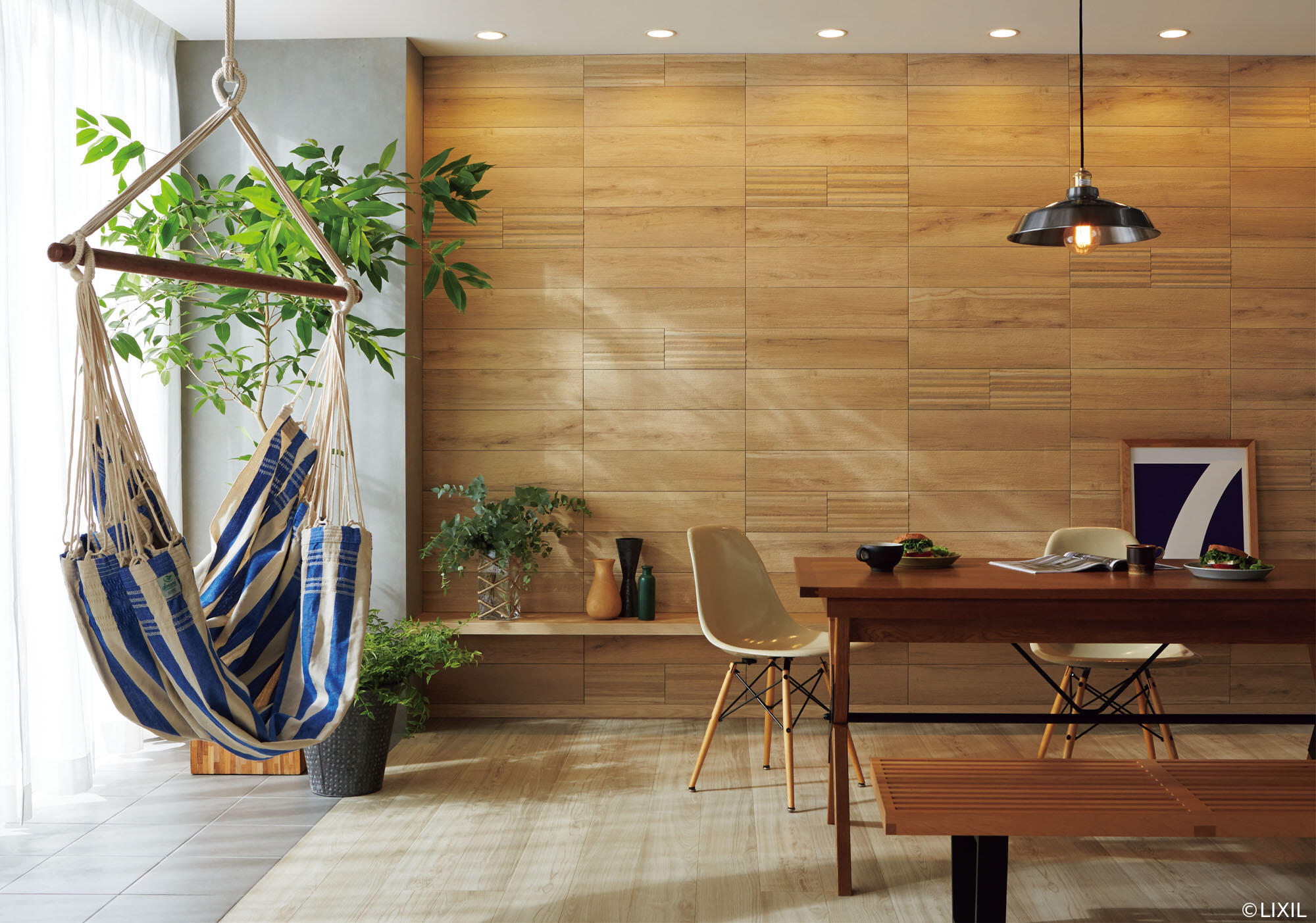 木目調の壁材は、空間に"ほっとする場所"をつくってくれます。