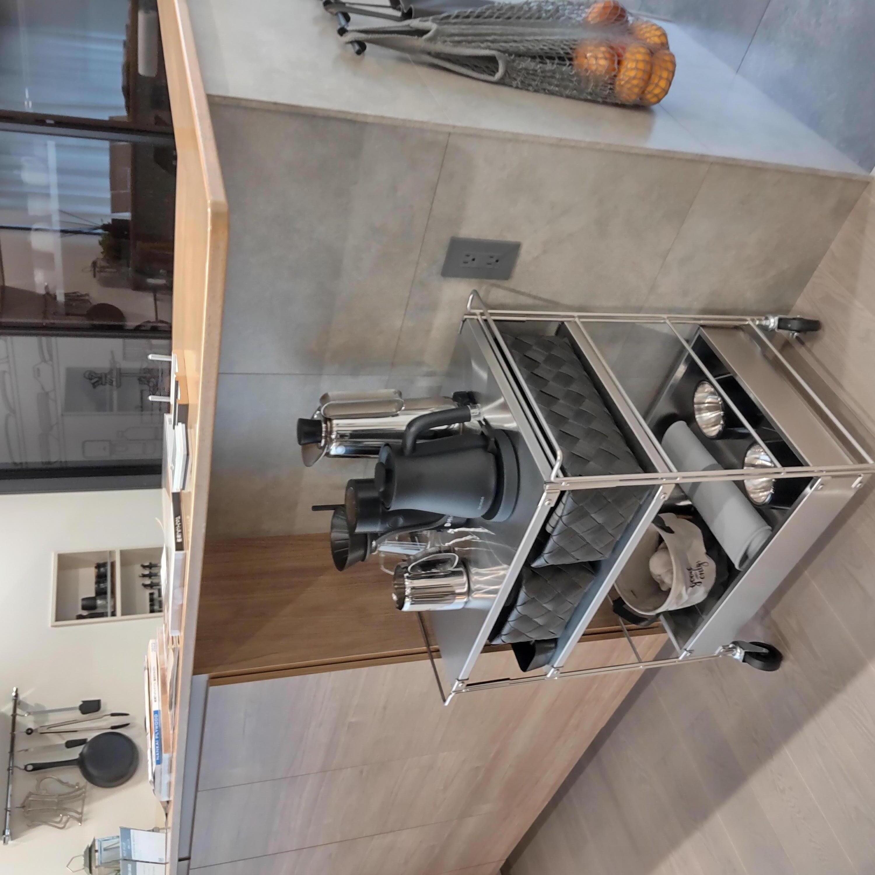 オープン棚や木製キャビネットで美しく収納できます。