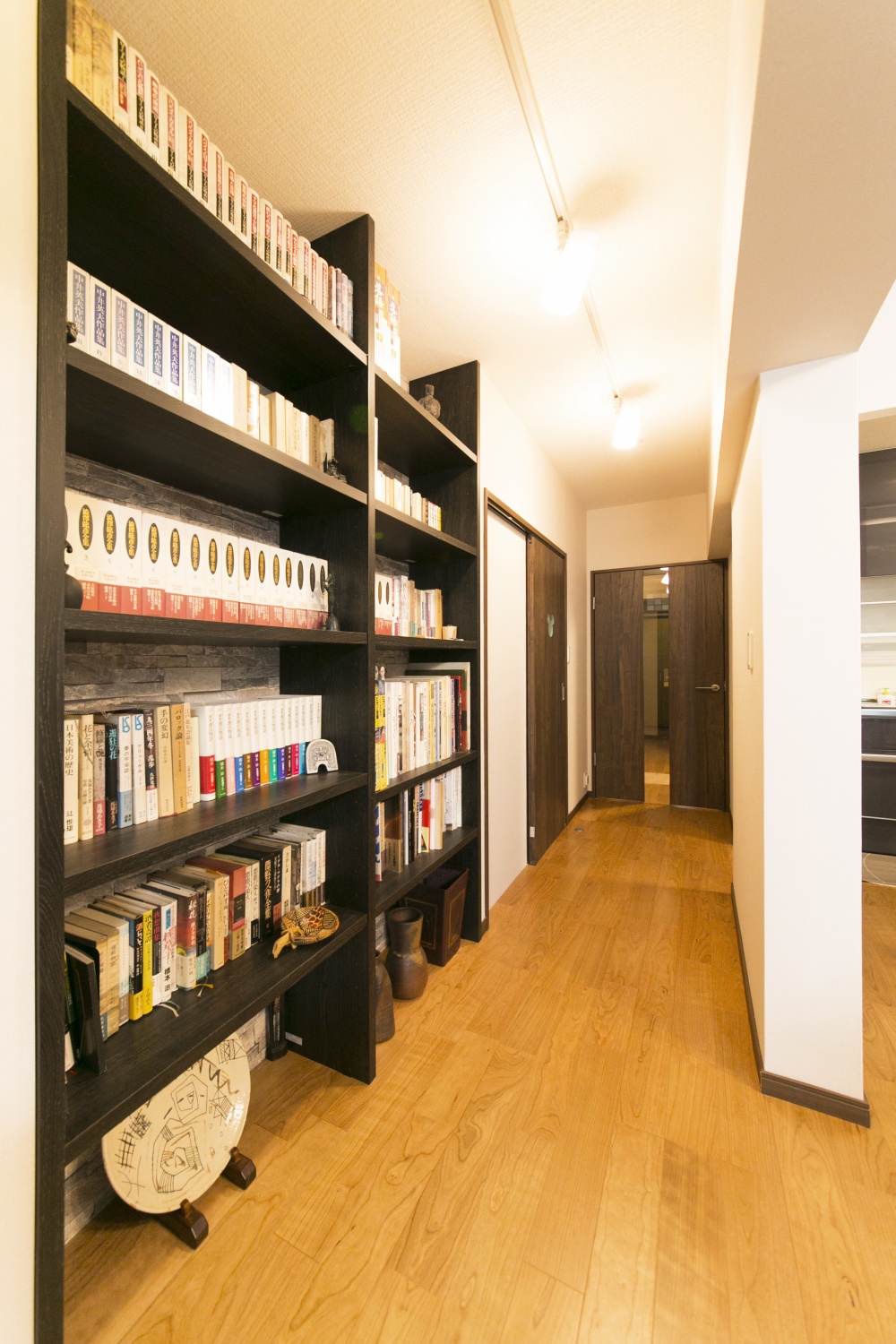 リビングダイニングと一体感のある空間にしました。 長年お使いになった愛着のある家具を残し、 空間を無駄にしない効率の良い収納をご希望でしたので、 壁面空間を利用したシステム収納を設置しました。