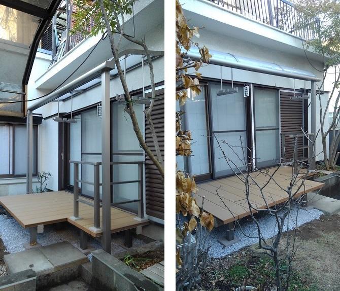 ウッドデッキは面積を広げ、新たにテラス屋根を取付けました。お部屋の延長のようで尚且つ解放感のある空間になりました。