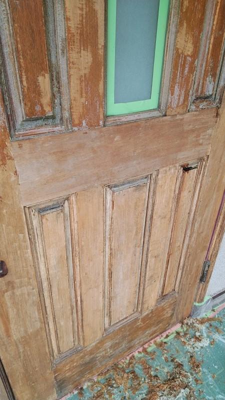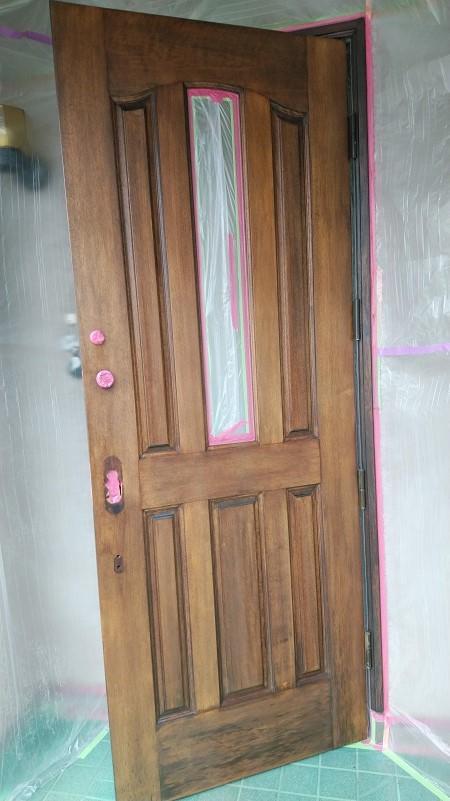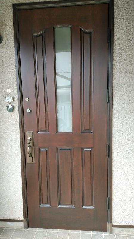 20年以上前のアイカ工業の木製玄関ドア。下半分は風雨に曝されて色も褪せて傷みが激しくなっていました。 LIXILではアルミ製のリフォーム用玄関ドアのご用意もありますが、施主様は木目の風合いを好まれており、玄関全体の外観との調和をふまえ、塗り替え工事をご提案させて頂きました。 また、塗り替え工事を行うタイミングでドアハンドルもピッキング防止対応のディンプルキーに交換し防犯性能もアップしました。