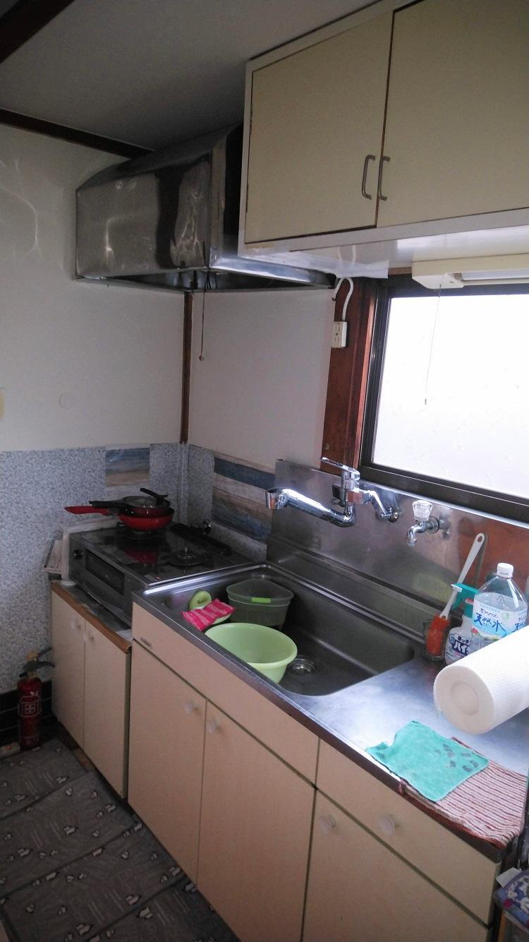 女性単身世帯のお施主様。和室との境の障子を撤去し、対面カウンターを設置しました。お施主様お気に入りの色“ピンク・水色”を基調に女性らしい可愛らしい空間になりました。