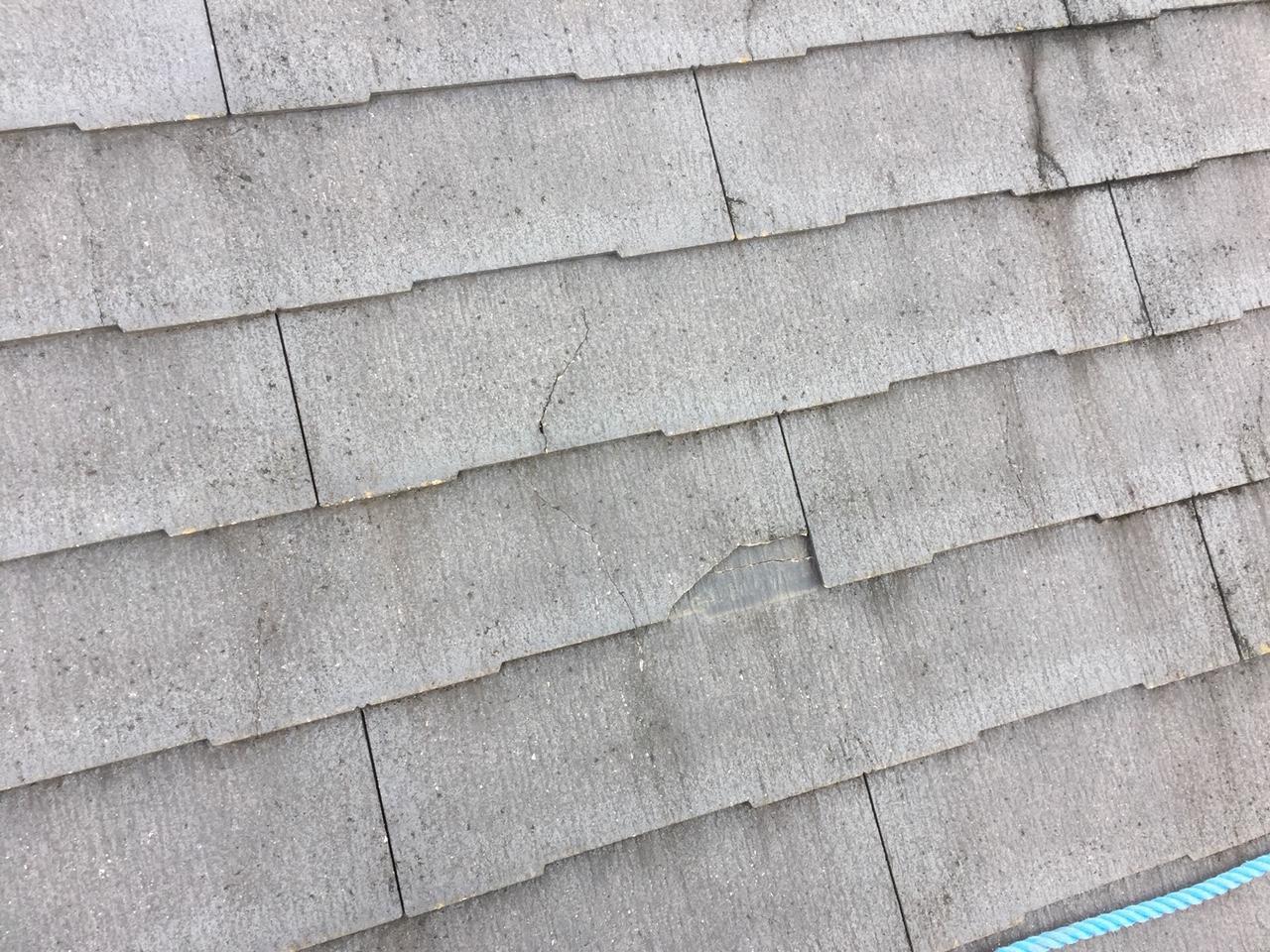 雨水が浸み込んでコロニアル(ストレートの屋根)が膨張・乾燥したり、浸み込んだ雨水が凍結・膨張を繰り返したりすることで、ひびや反り・欠けが生じていました。そのため、コロニアルの張替え工事を行いました。コロニアルのひびや反り・欠けは、表面を保護している塗膜の機能が失われ、防水性のないコロニアル本体に雨水が浸み込むことで起こります。