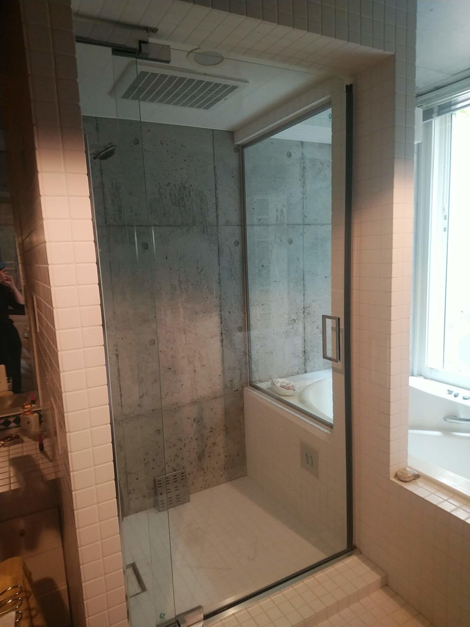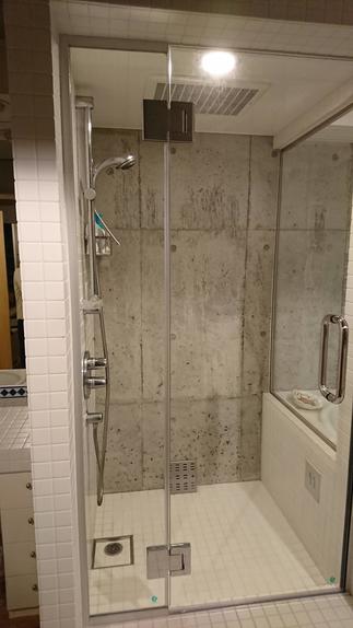 ガラスドアの開け閉めが悪くなりシャワーブースのガラスドアをご交換されました。 交換後、透明度の高い高品質なガラスドアをご覧になり、 毎日のシャワータイムが楽しみになった♪と大変喜んでいただけました。 強化ガラスドア ガラス丁番:スガツネ ステンレスバー取手:ステンミラー