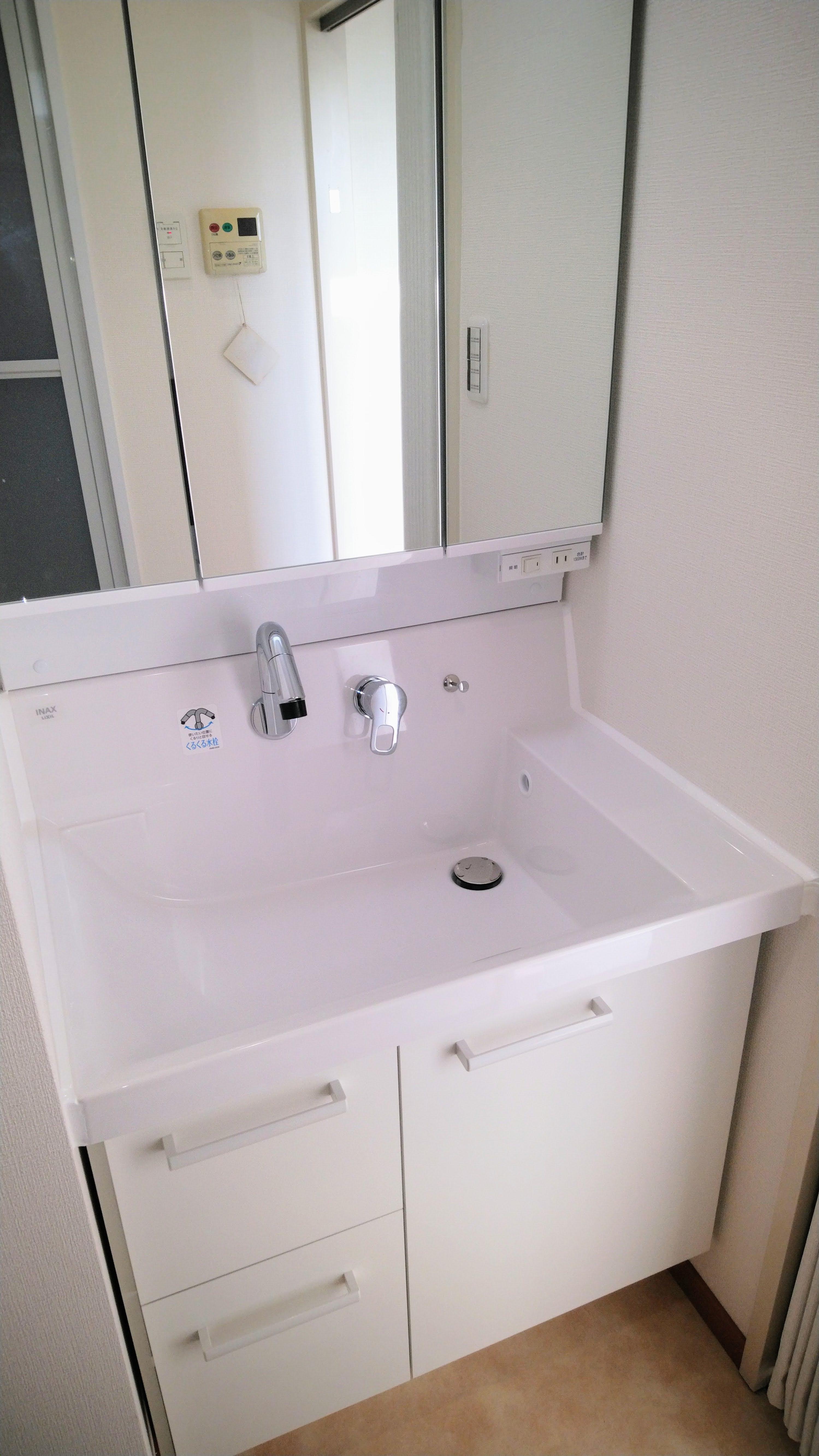 全体的な経年劣化もありますが、奥様が股関節を痛めてしまわれ、既存浴槽のまたぎが高くて入りが困難なため浴室リフォームをご検討されました。洗面所・トイレも古いのでの合わせてリフォームのご依頼をいただきました。明るくて広見え☆清潔感もアップするホワイトインテリア。