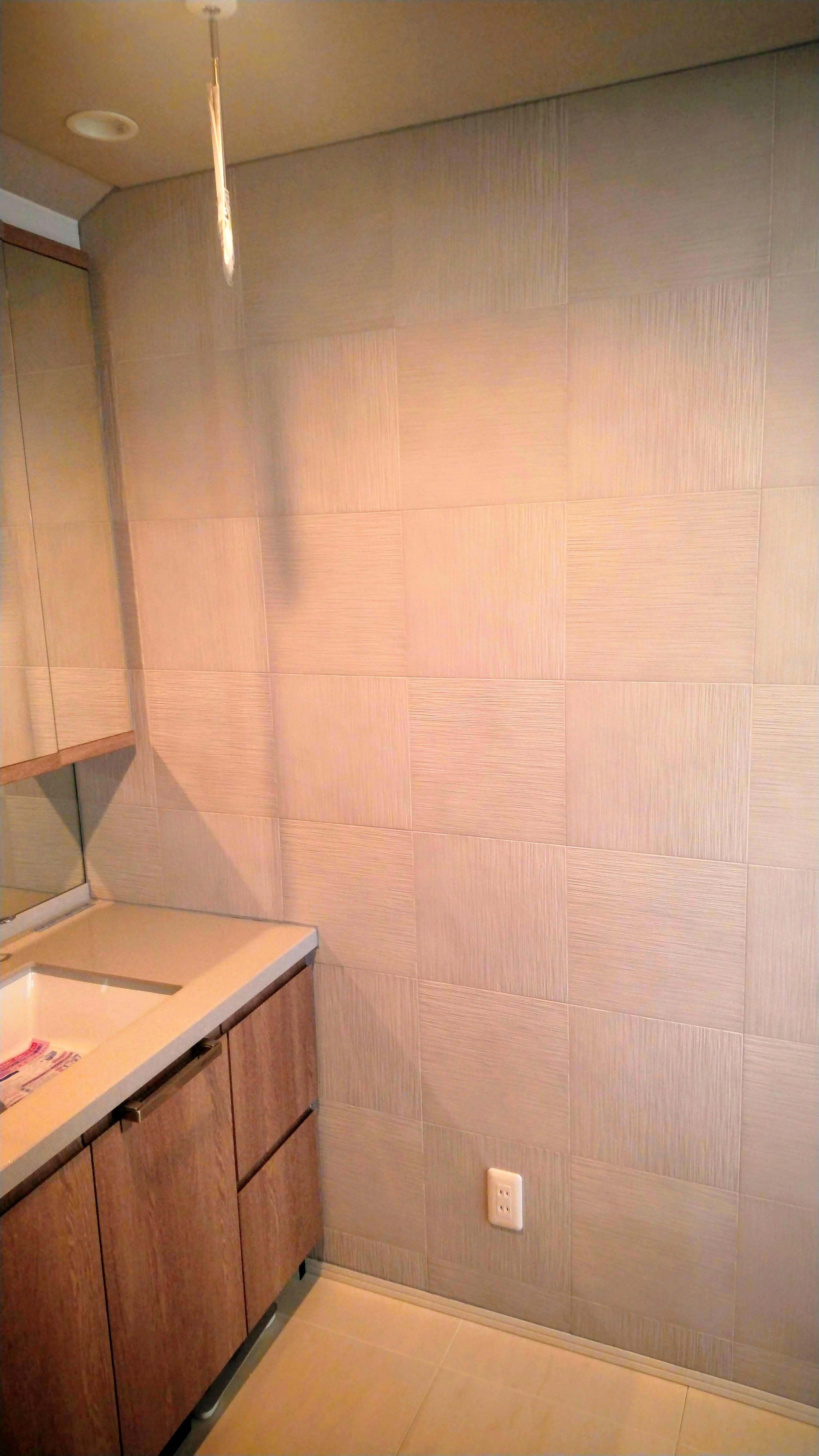 新築戸建住宅をご購入され、お引っ越し前にご家族お好みの内装にカスタマイズ。それぞれのお部屋には、アクセントクロスを。ご家族みんながお使いになる洗面所には調湿建材のエコカラットプラスを施しました。