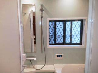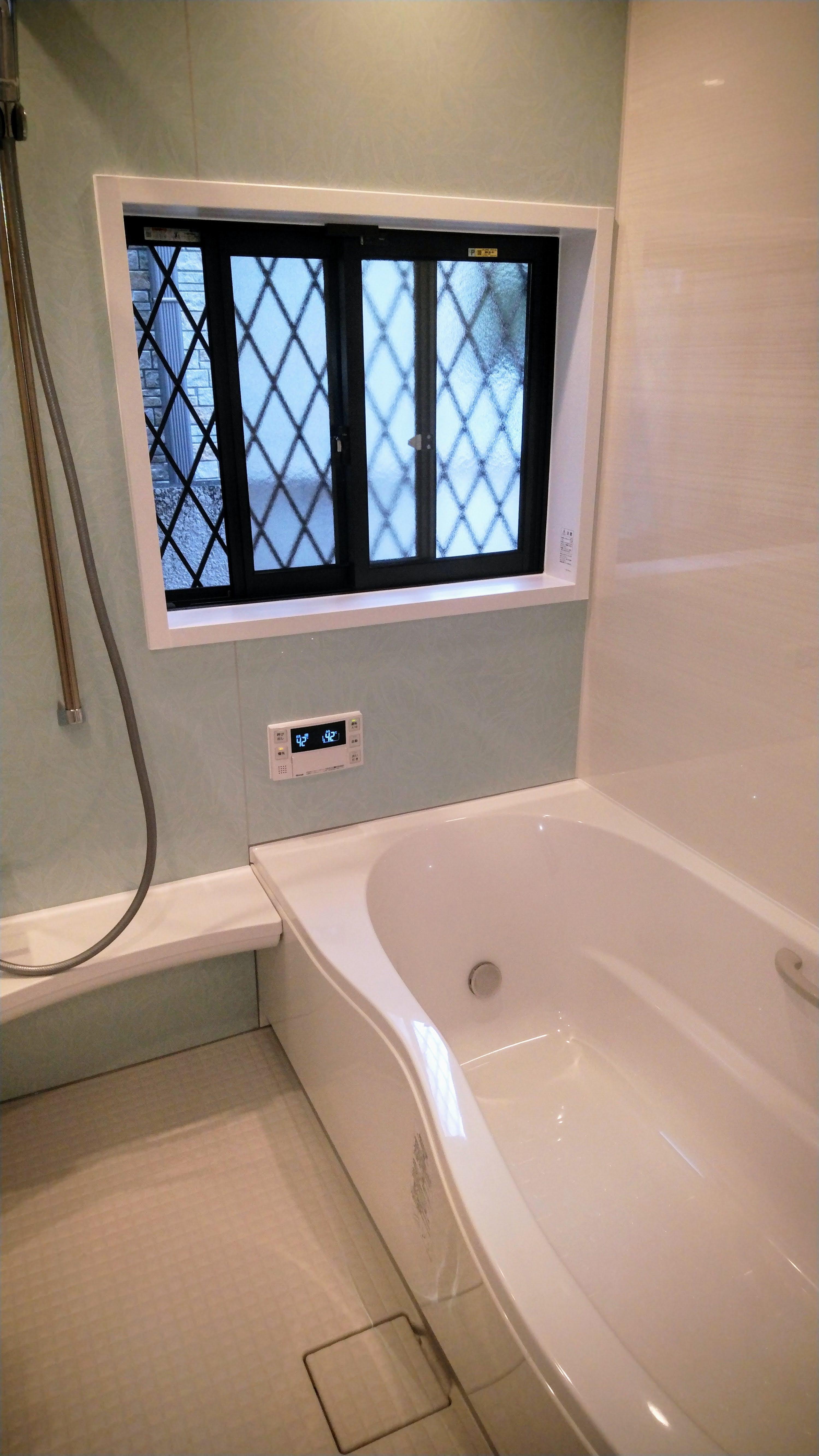 「浴室リフォームは窓もセットじゃないと、すこぶるもったいない!」冬の浴室の寒さの一番の原因は、大きな窓です。タイルのお風呂からユニットバスにリフォームしただけでは寒さが完全には解消されない為、LIXILカバー工法引き違い窓を採用し、窓の幅を小さくする工事も行いました。