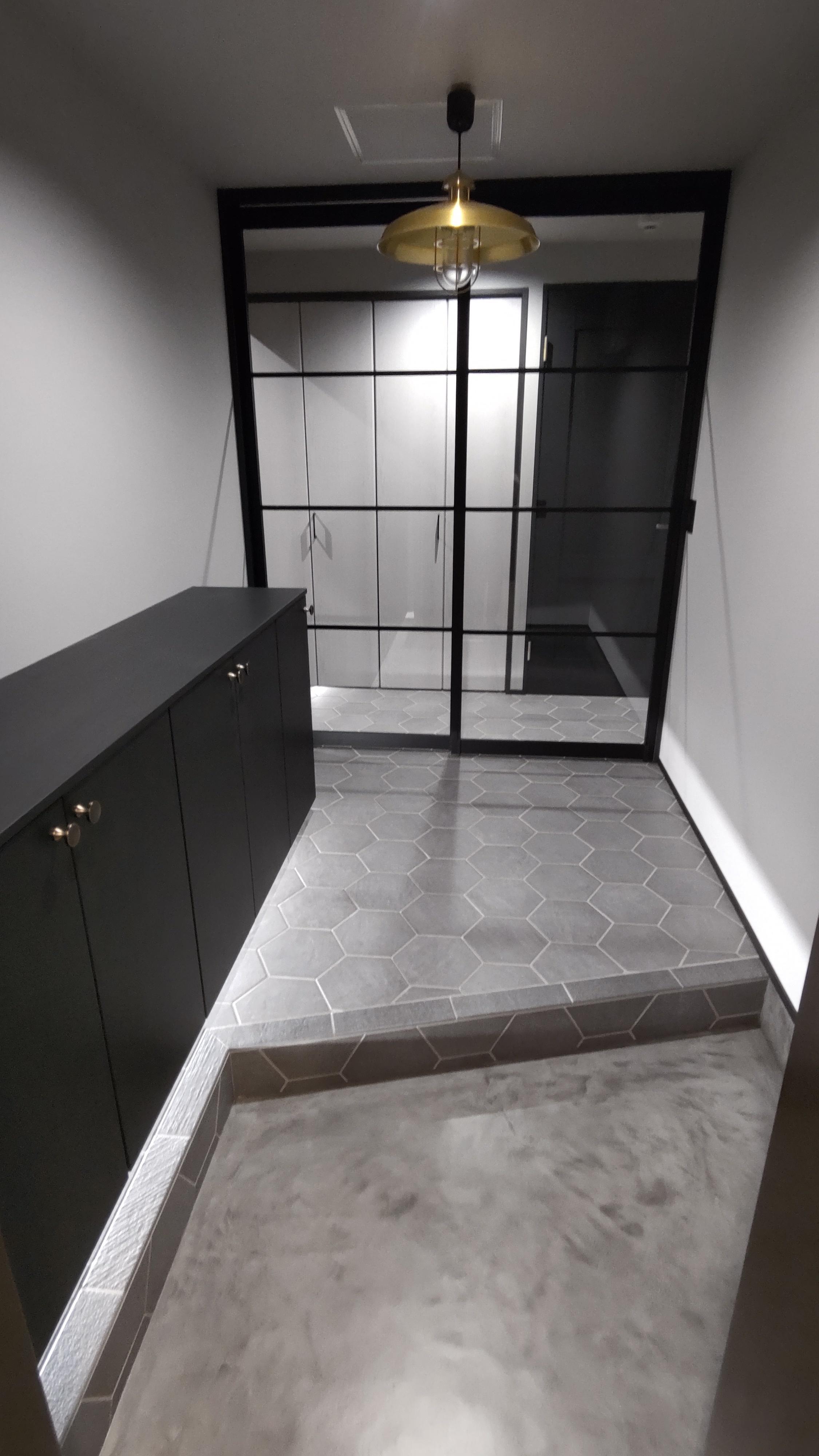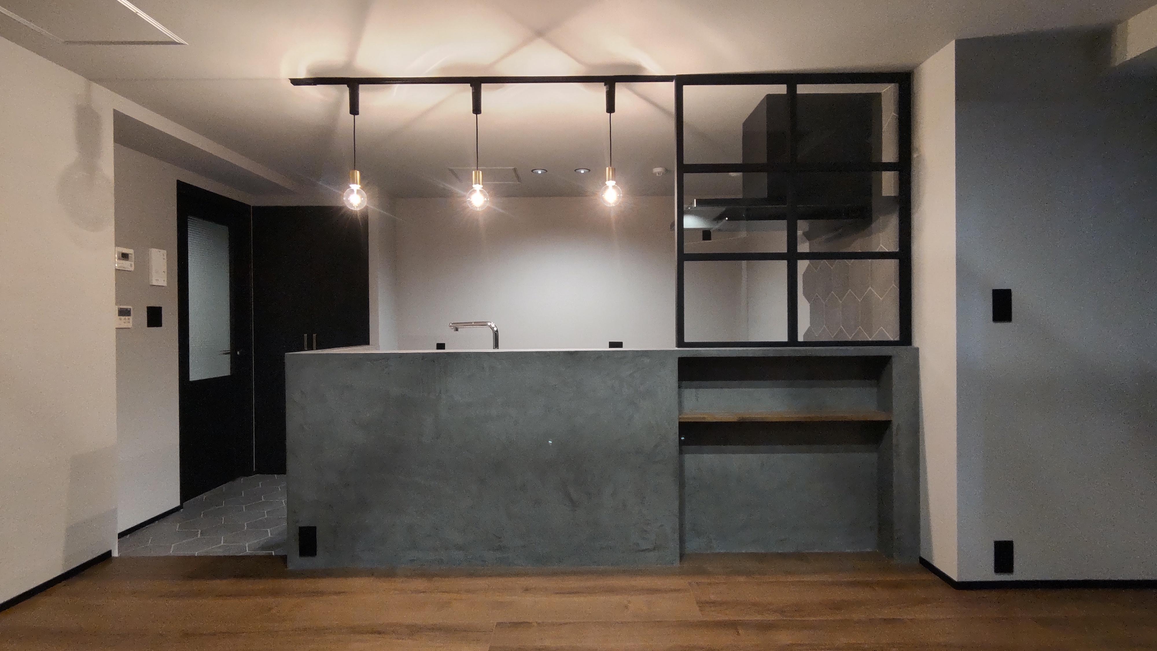 中古マンションを購入後スケルトン・フルリノベーションでK様好みのお住まいに生まれ変わりました。モノトーンカラーで統一された空間は「ここは、まるでニューヨークのマンハッタン?!」とマンハッタンにいるような気分になってしまいます。夜景を眺めるのも楽しみの1つになりましたと大変喜んでいただきました。