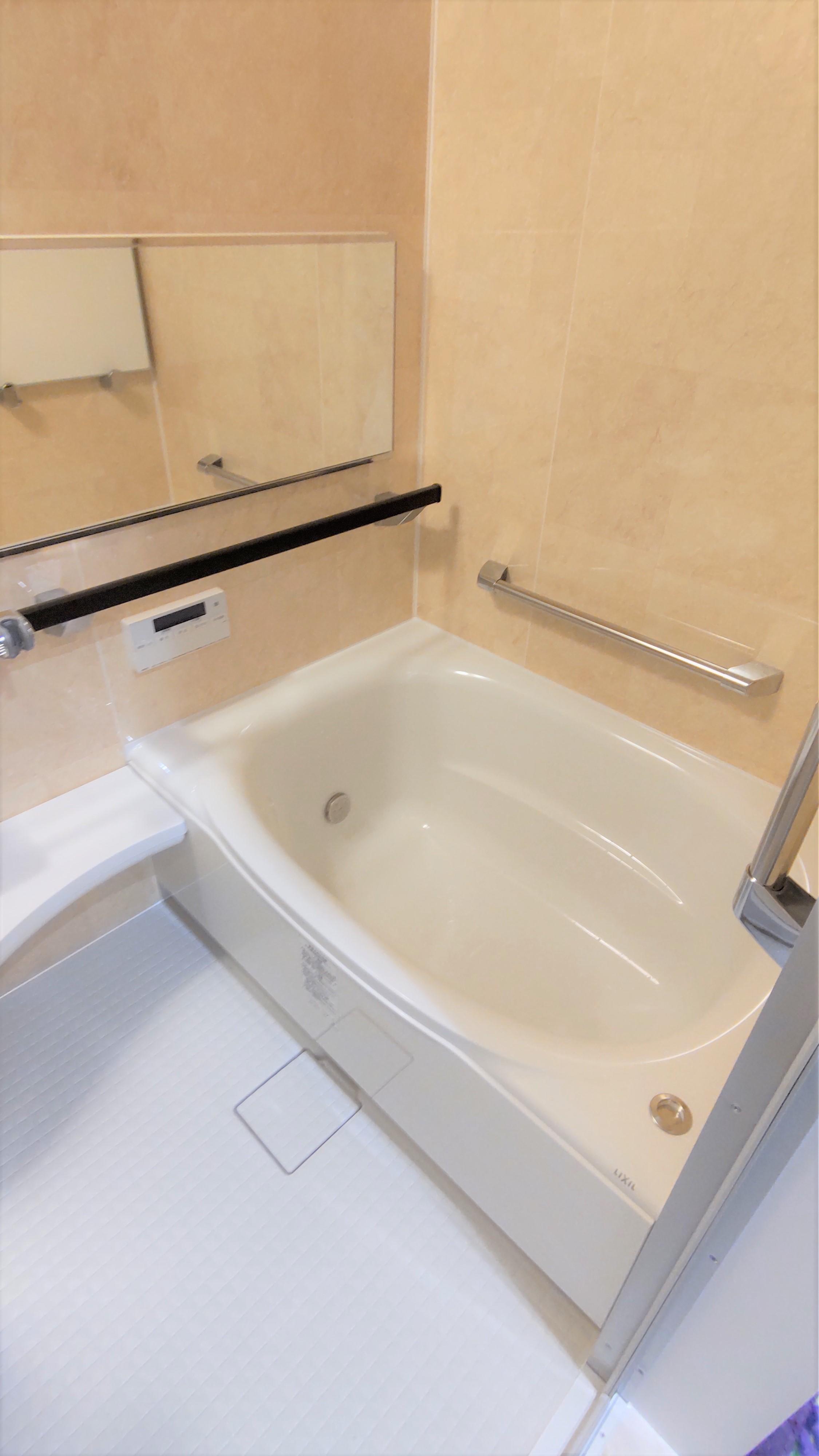浴室:LIXIL アライズ 1216/壁パネルカラー:組石ベージュ