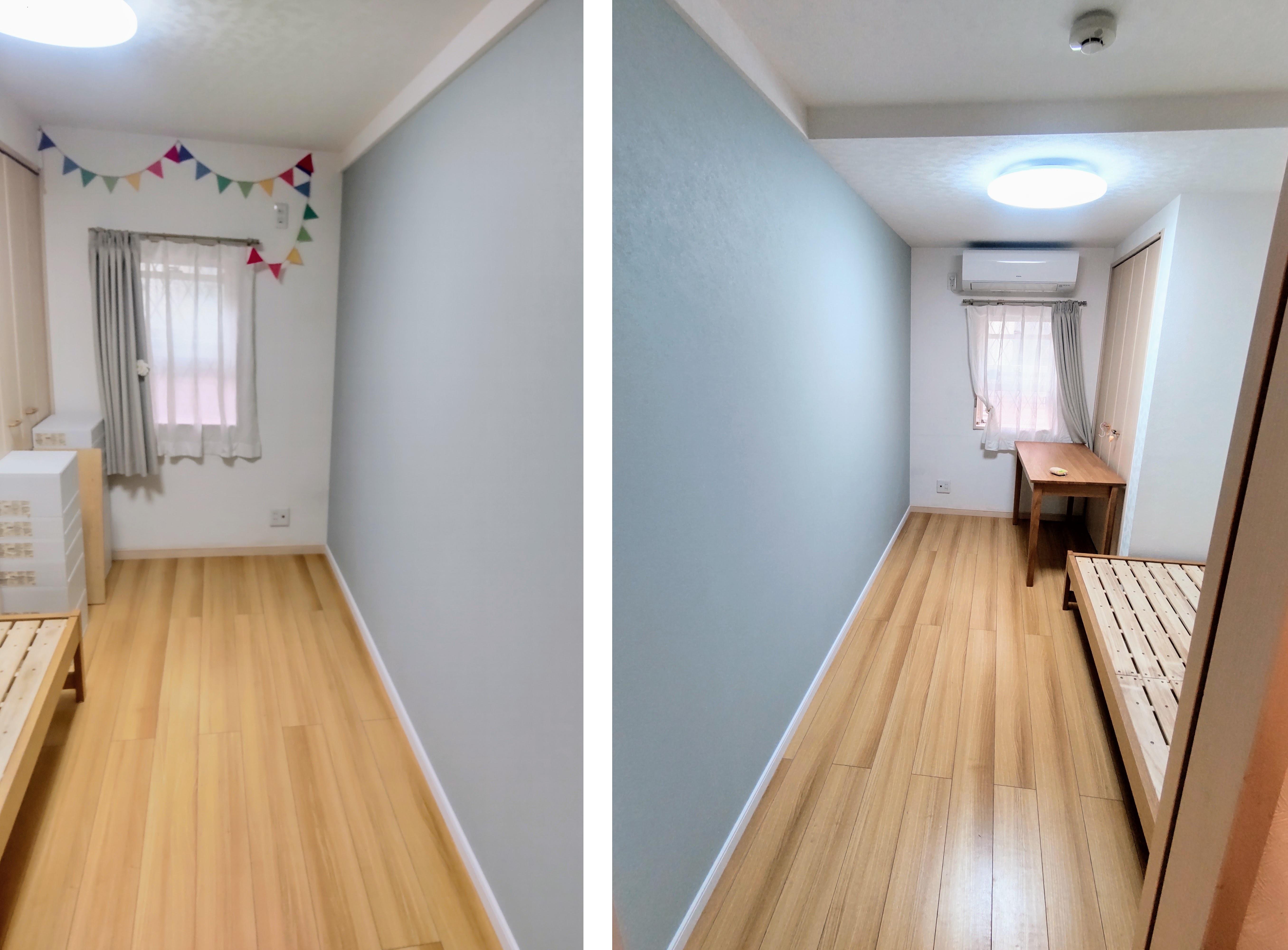 新築時は広い一つの子供部屋でしたが、上のお子様の小学校進学を機に、間仕切壁を造作し2つの個室にリフォームしました。