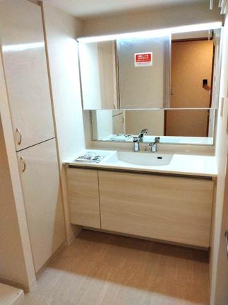 やわらかい印象を与えるグレージュの色味をベースにした水まわり空間。ベージュの持つ明るく優しい温もりに、グレーのスタイリッシュな印象がプラスされ、エレガントで洗練された水まわり空間に生まれ変わりました。