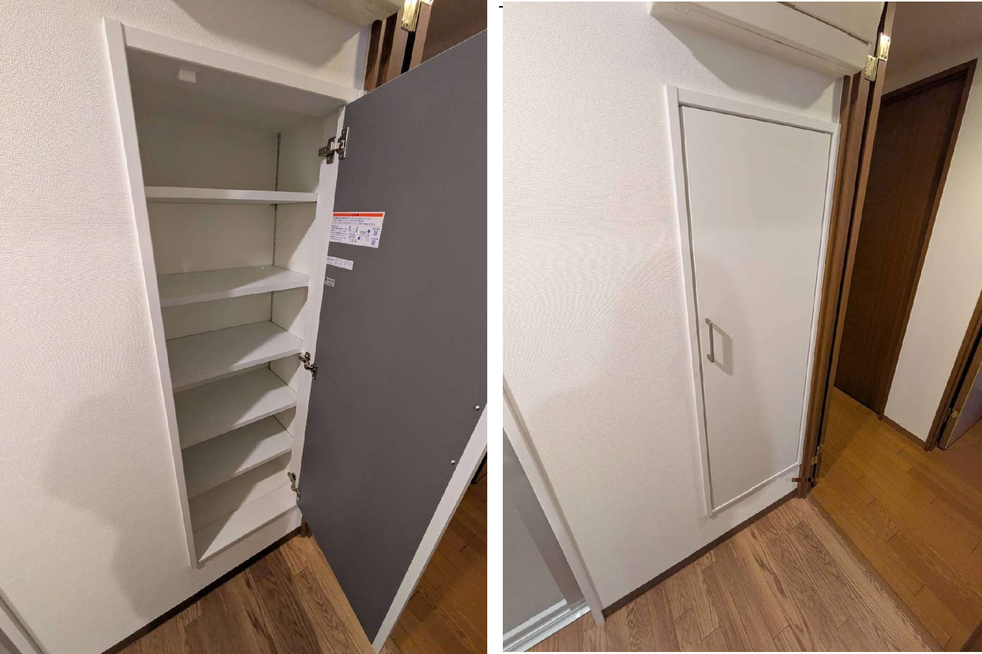◇脱衣所収納:LIXIL ラシッサS 収納開き扉+棚板増設