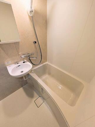 集合住宅用ユニットバス「BLWシリーズ」をご採用。コンパクトな空間でも、カラーコーディネートと設備の工夫で快適さと清潔感を両立しています。空間を広く、快適に感じられる心地よいコンパクトバスルームです。