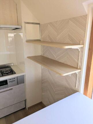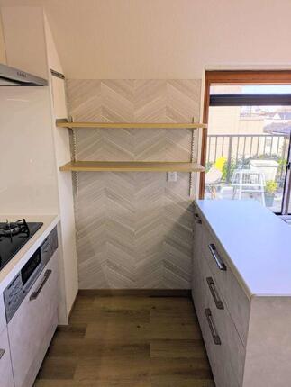 キッチン:LIXIL ノクト 扉カラー/WL2:ホワイトスタッコ ,IM2:ブリーチドウッド