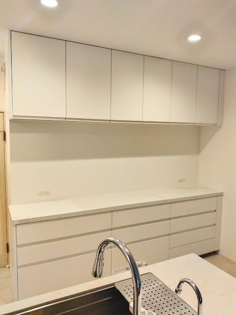 白を基調に、凛とした美しさと上質さを感じるキッチン空間。光沢を抑えたマットな風合いの扉カラー、扉に手掛けを組み込んだ取っ手レス仕様で家具のように美しい佇まいを実現しました。