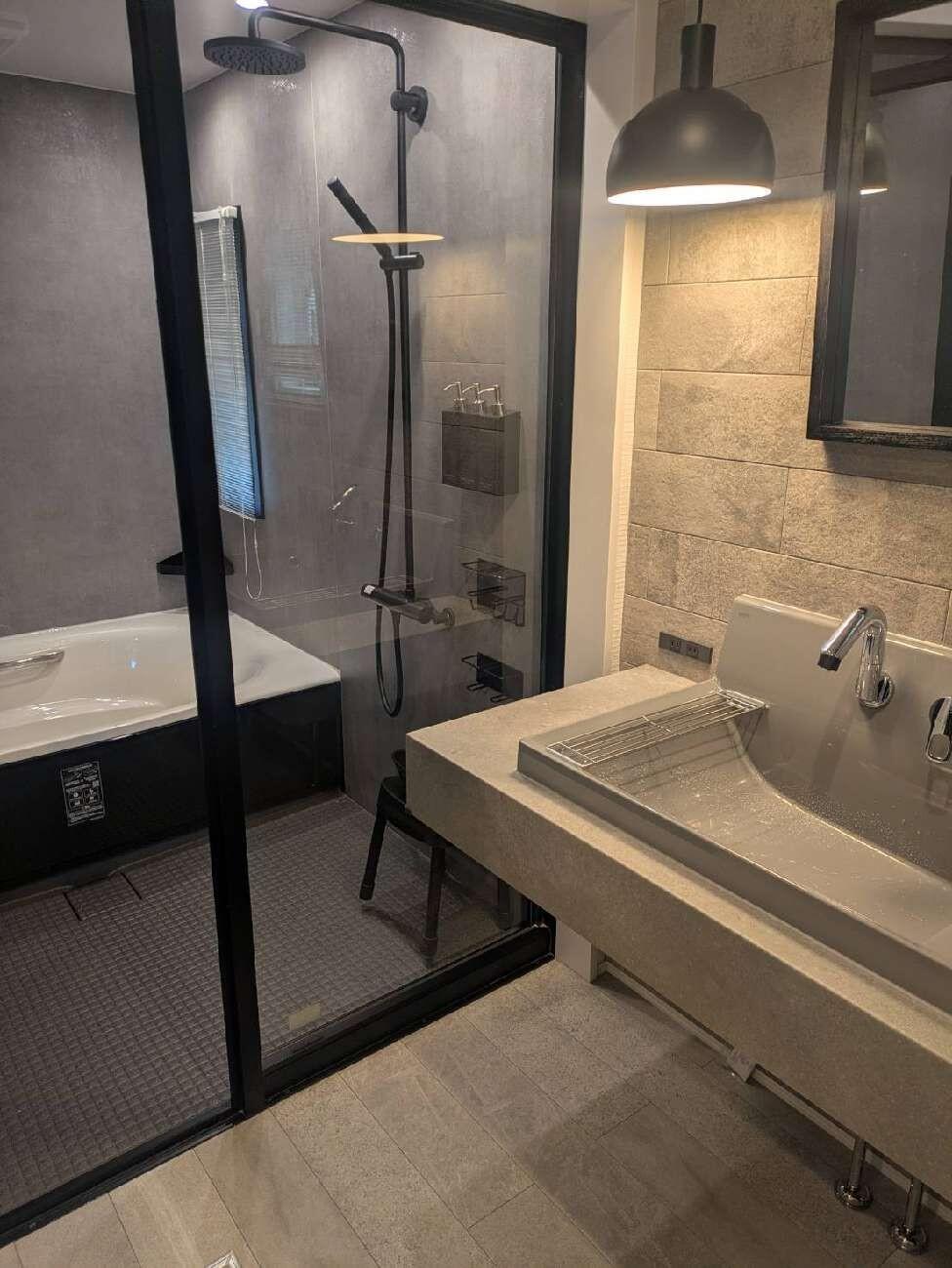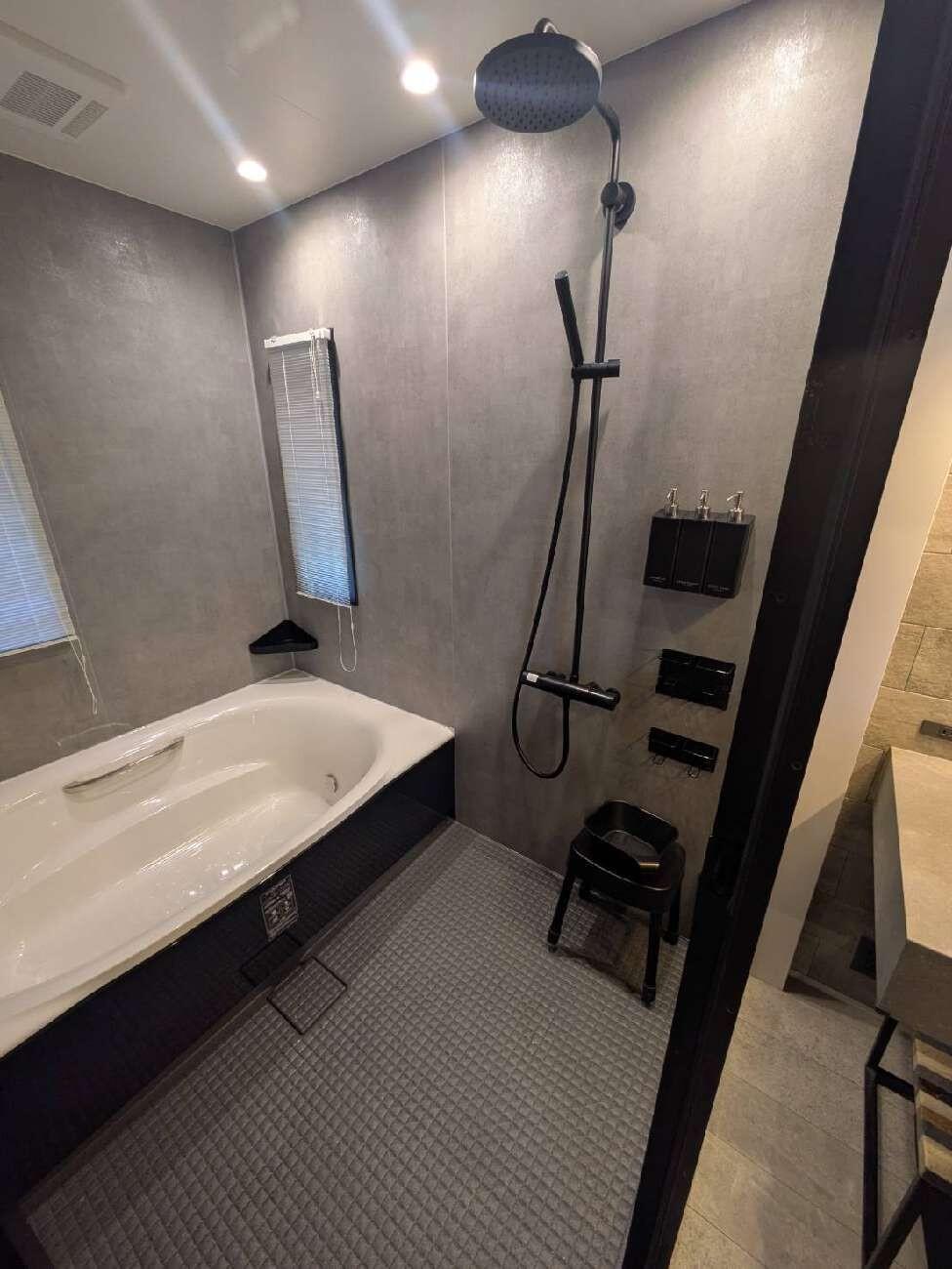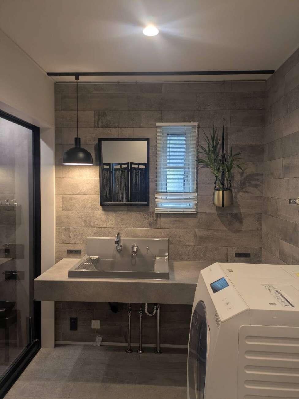 リビングのリフォームでお世話になったOB様より、このたび浴室・洗面所リフォームのご依頼をいただきました。ホテルライクな演出に最適なLIXILの「カスタムバニティ」を採用。シックなトーンを基調に、日常の中で上質なリラックスタイムを楽しめるホテルライクな空間へと生まれ変わりました。ミラーはピクチャーレールで吊るすことで、すっきりとしたミニマルな印象に。グリーンを飾ることもでき、空間にさりげない彩りを添えています。