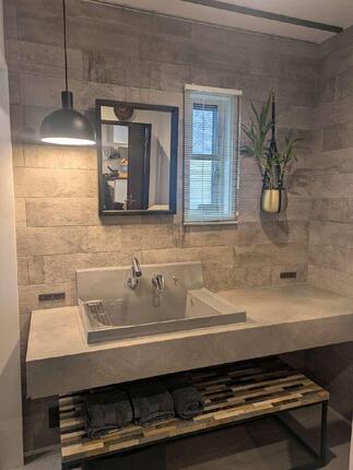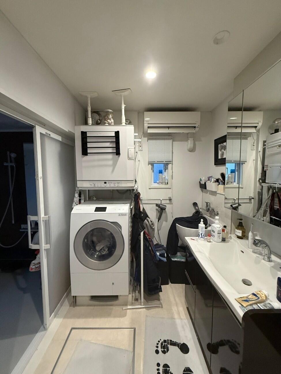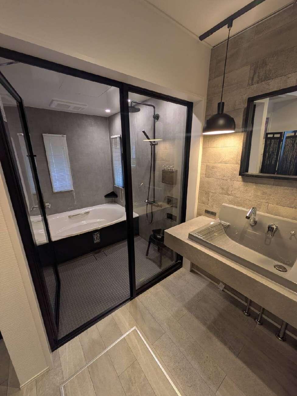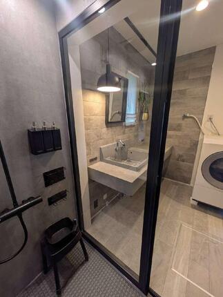 リビングのリフォームでお世話になったOB様より、このたび浴室・洗面所リフォームのご依頼をいただきました。ホテルライクな演出に最適なLIXILの「カスタムバニティ」を採用。シックなトーンを基調に、日常の中で上質なリラックスタイムを楽しめるホテルライクな空間へと生まれ変わりました。ミラーはピクチャーレールで吊るすことで、すっきりとしたミニマルな印象に。グリーンを飾ることもでき、空間にさりげない彩りを添えています。