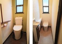 キレイなだけじゃない、シックで上品な空間に。こだわりのトイレリフォーム。"LIXILサティスS LIXILアメージュZリトイレフチレス リフォーム"