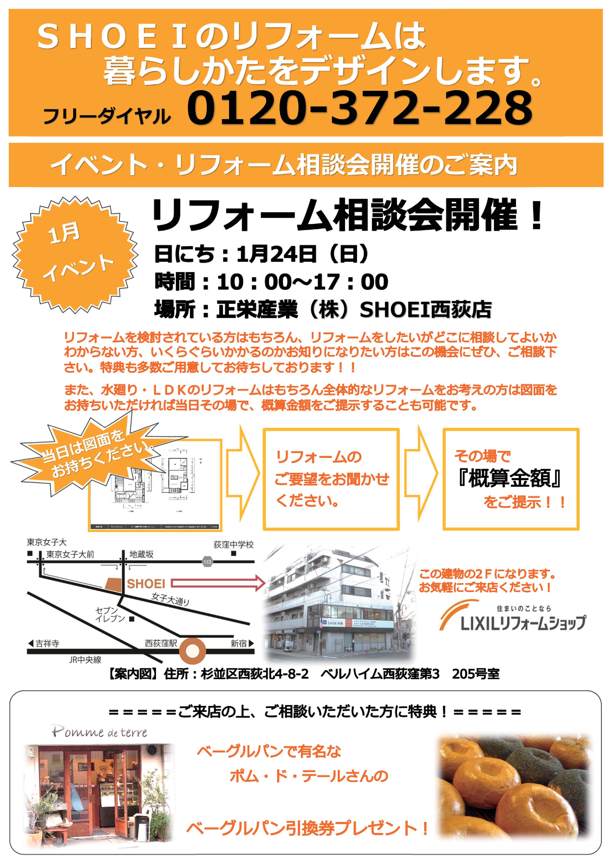 1月24日(日)10:00~SHOEI西荻店にて『リフォーム相談会』を開催致します。