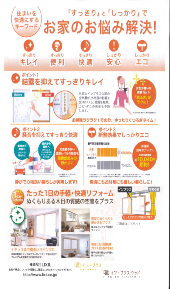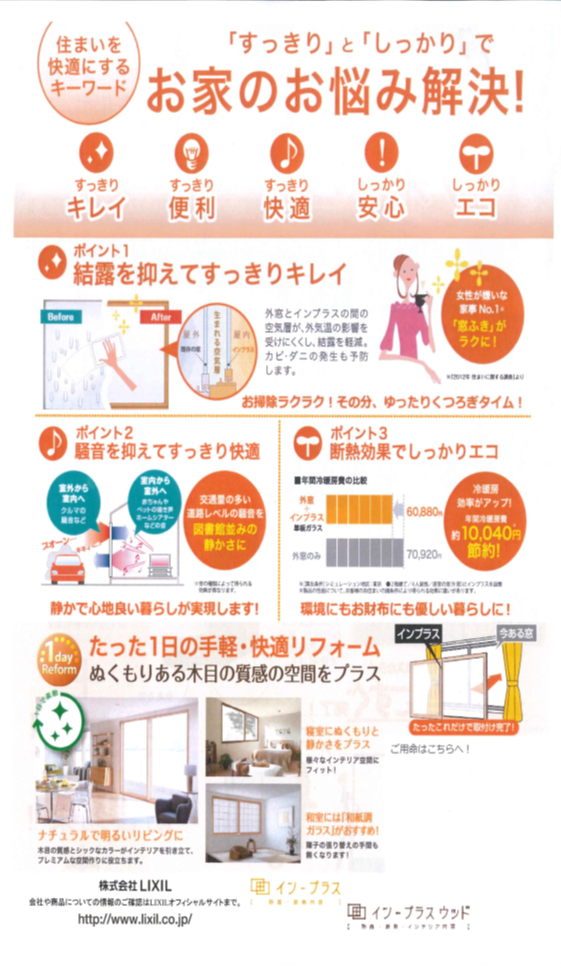 ~寒くなる前に樹脂製内窓「インプラス」のご案内です~