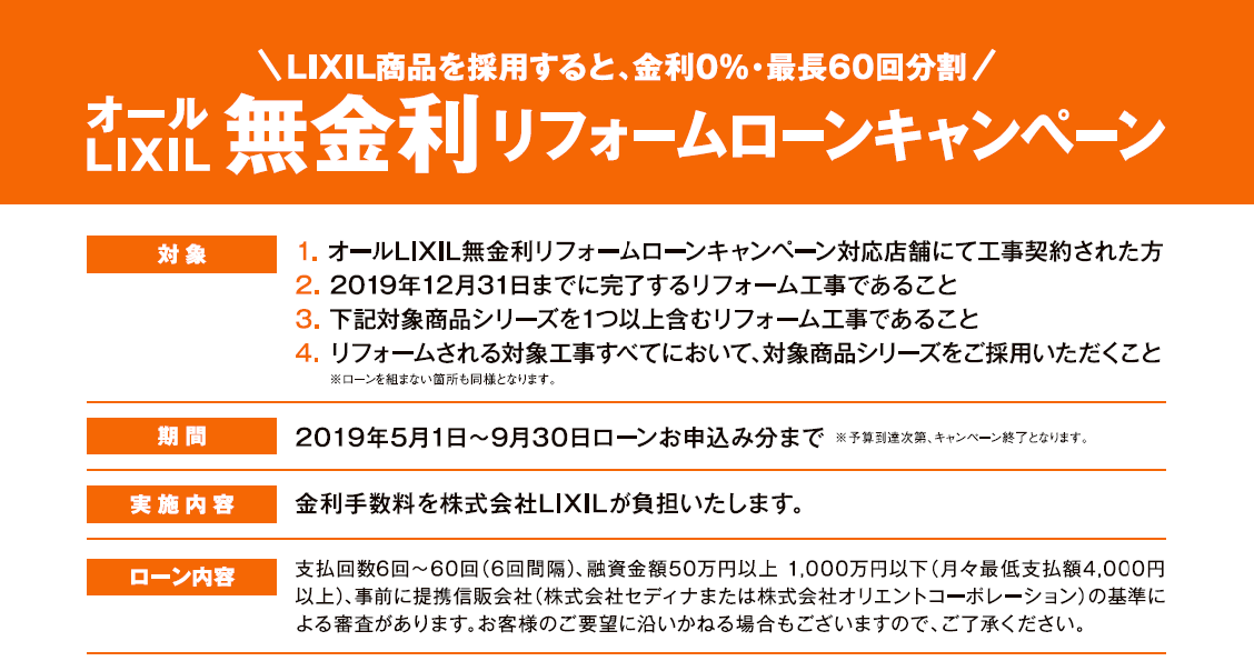 一覧へ戻るオールLIXIL無金利リフォームローンのご案内です(^^)/