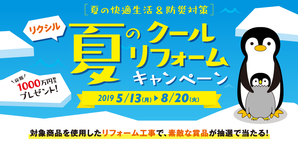 キャンペーン期間中、対象商品を使用したリフォーム工事で、素敵な景品が抽選で当たります。