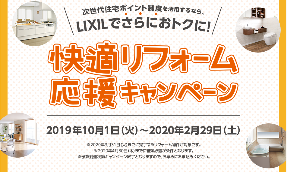 LIXIL 快適リフォーム応援キャンペーン、次世代住宅ポイント制度の