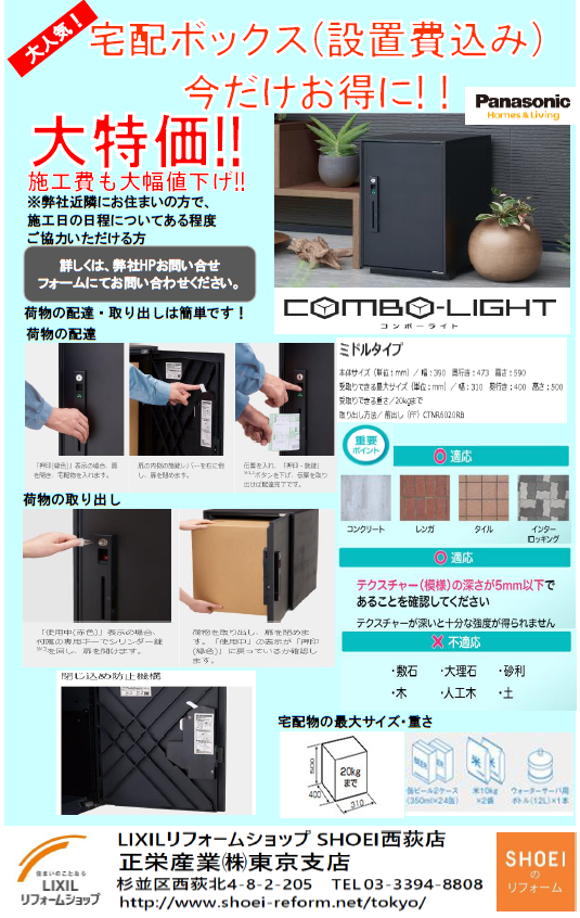 大特価!パナソニック 宅配ボックス コンボライトキャンペーン!!