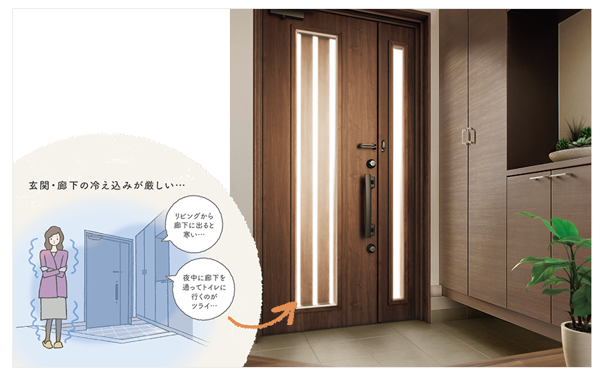 外窓の交換、ガラスの交換、内窓の取付+玄関ドアの改修