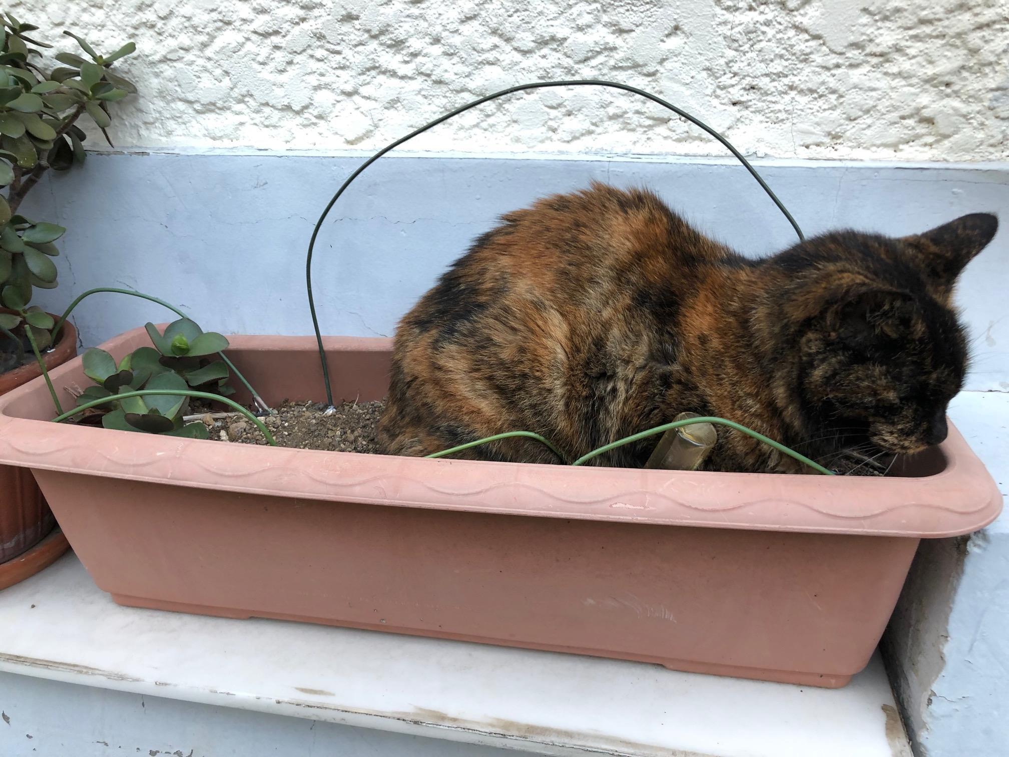 西荻北5丁目のネコ(プランターの寝心地はいかが?)