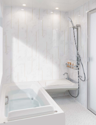 LIXILユニットバス「スパージュ」「 リデア」 壁パネル無料アップグレードいたします。プレミアムⅡクラスまでの壁パネル全面張り・アクセント張りが選べます!