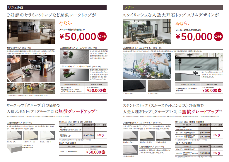 ご好評のセラミックトップなど対象ワークトップが今なら、