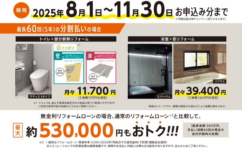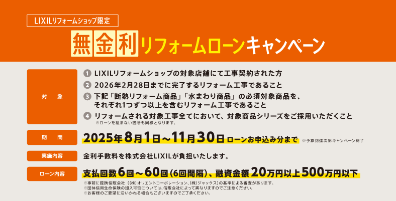 2025年8月1日~11月30日お申し込み分までの期間限定で、LIXILリフォームショップSHOEI西荻店では「無金利リフォームローンキャンペーン」を実施します!