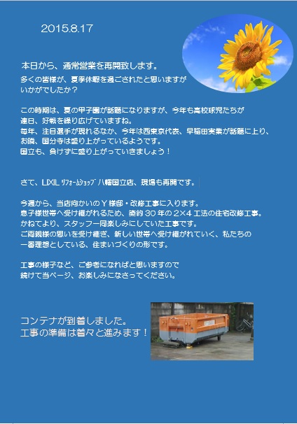 夏後半スタート