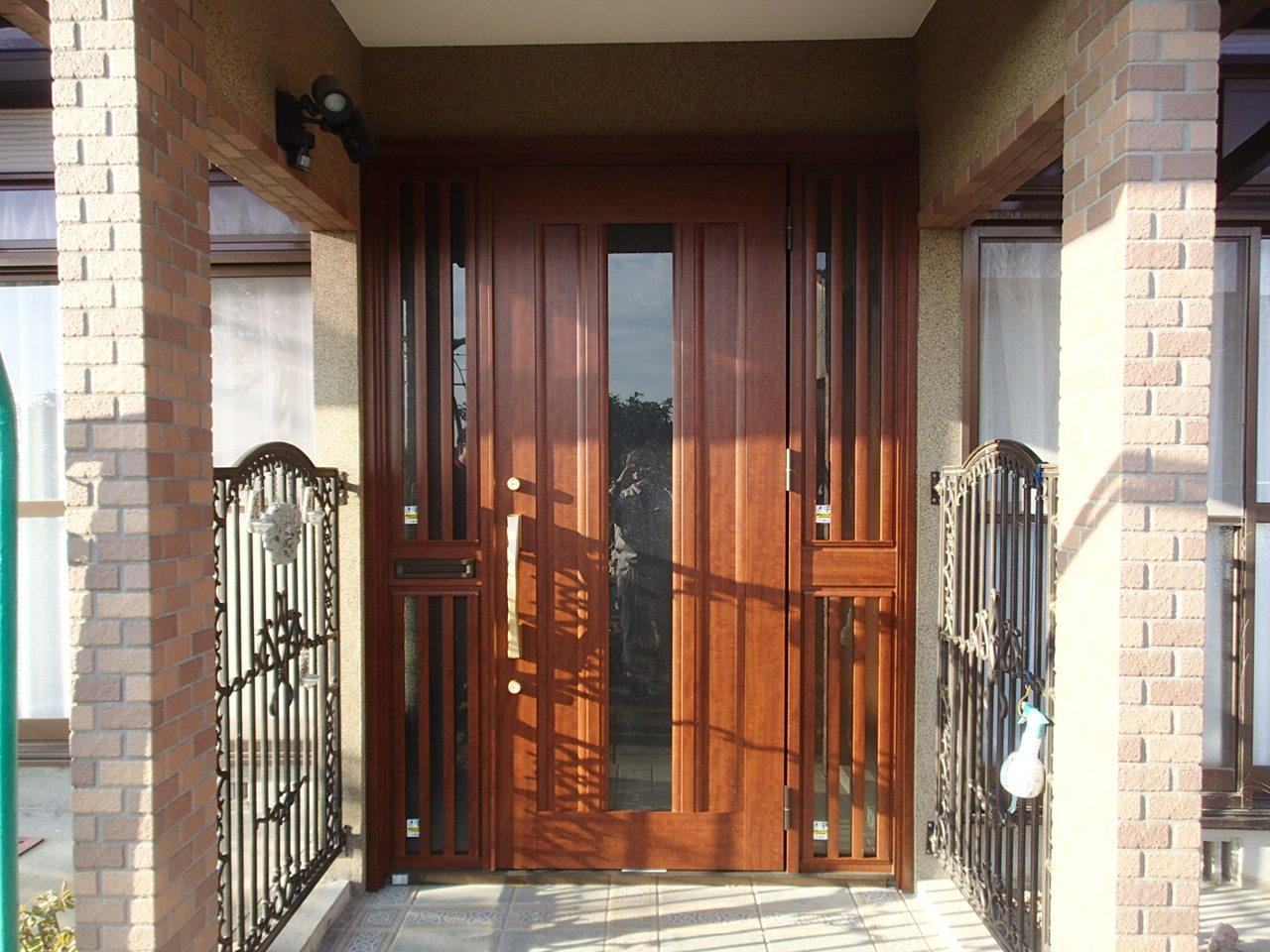 お家の顔である玄関ドアの取替工事。 ドアの取替だけで雰囲気が一変!! とても重厚で気品あるお洒落なお家になりました。