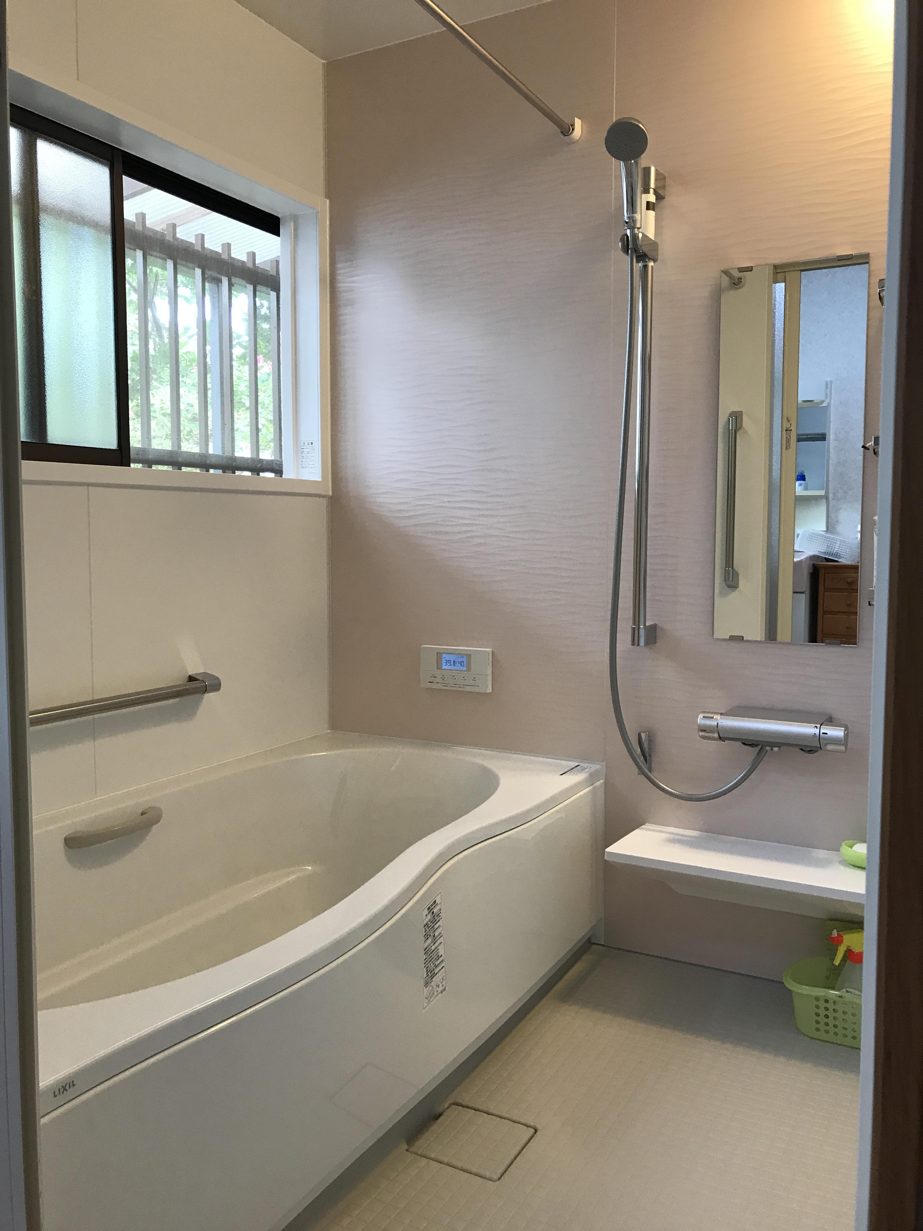 在来の浴室から断熱効果バッチリのユニットバスへ....これからの季節、入浴時の寒さが身にこたえますがI様邸は安全で快適なバスタイムを過ごせること間違いなしですね。洗面脱衣所も明るくなりなりました。