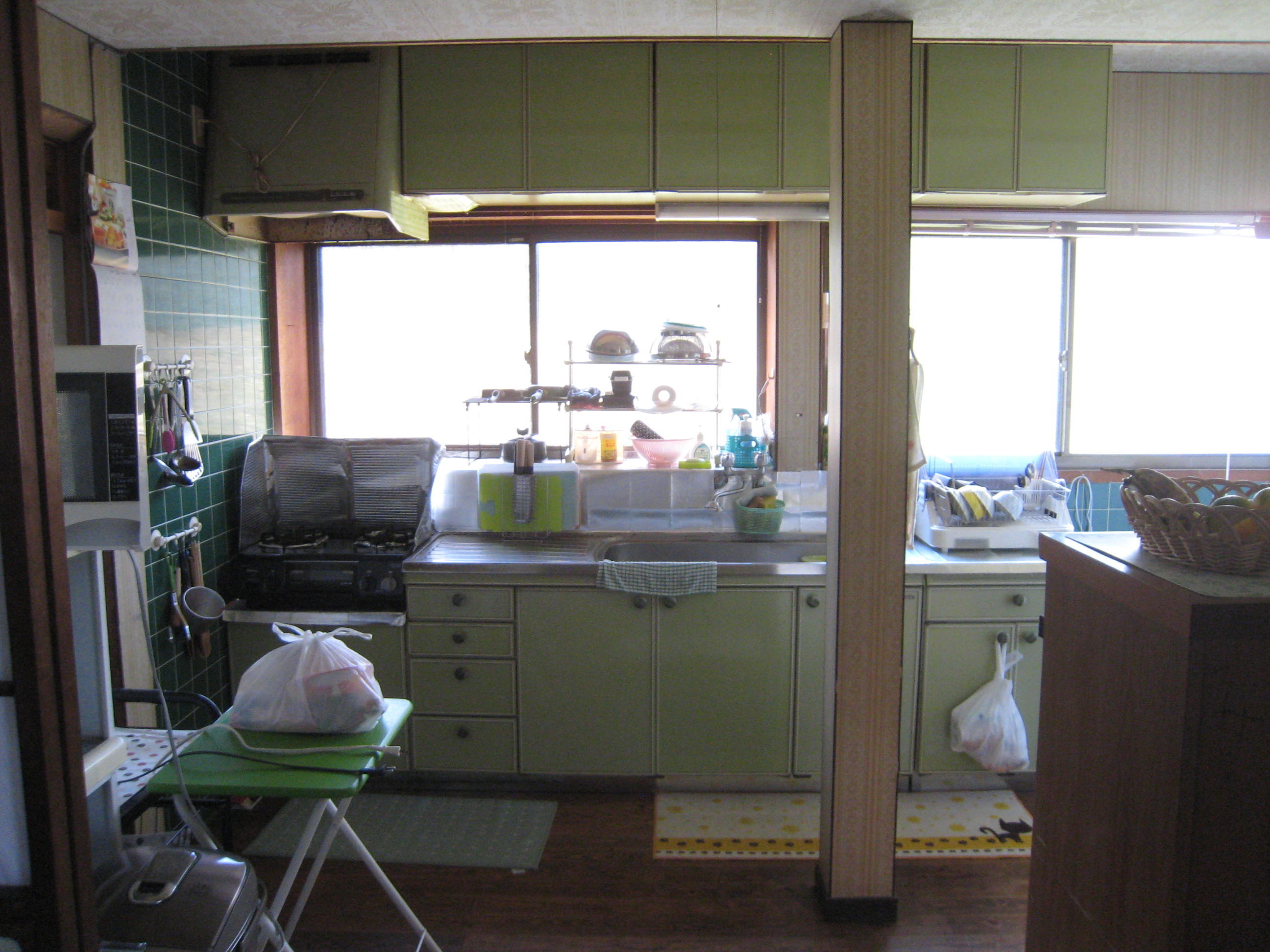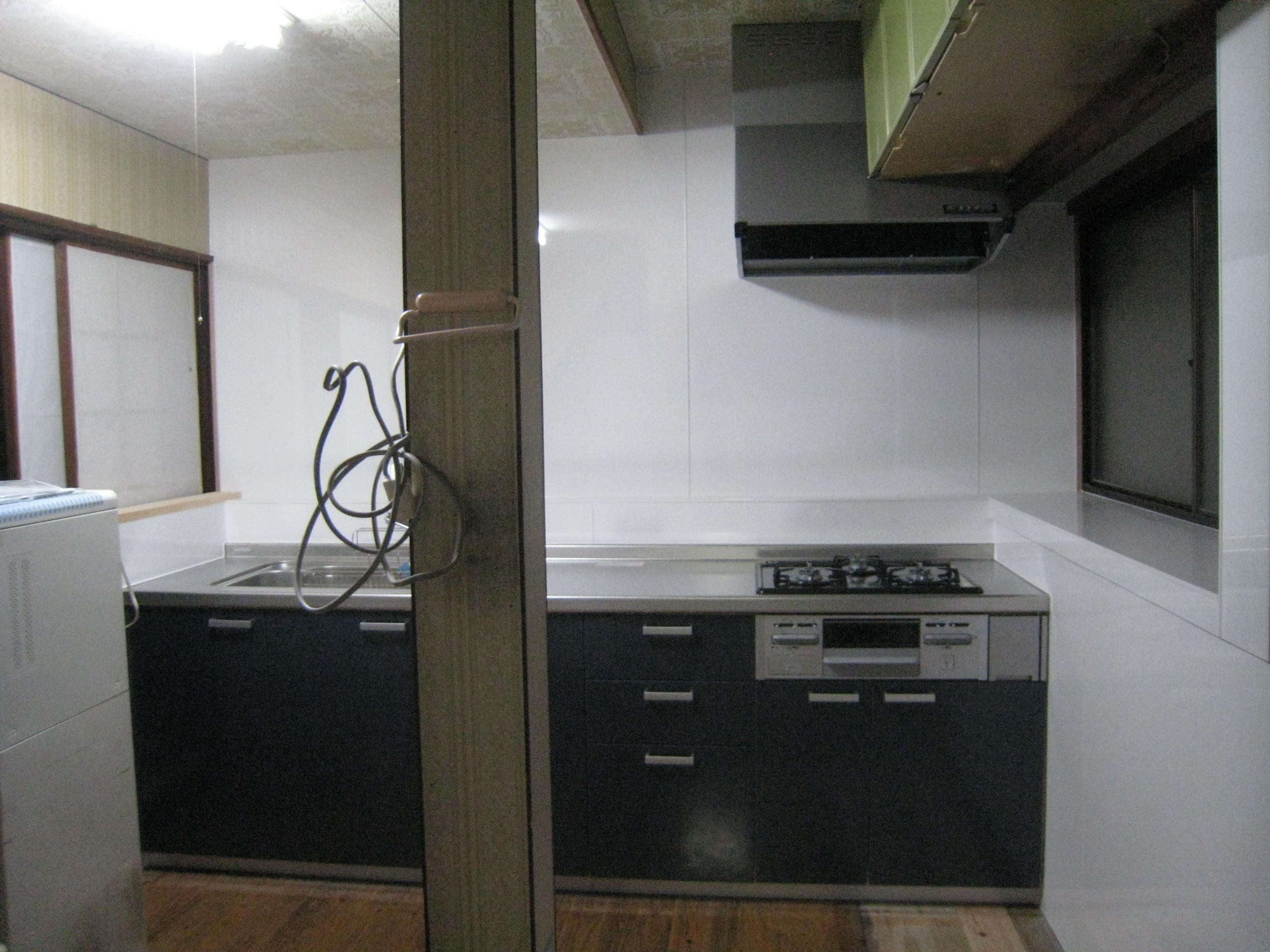 キッチンの奥行のサイズが以前のものより広くなった為、同じ場所への設置が難しく、さらに2階を支える柱をぬくことができず、行き来すら難しくなるという理由からキッチンの向きを変更するという結論にいたりました。 シックにまとまったとてもおしゃれなキッチンが据え付けられました。