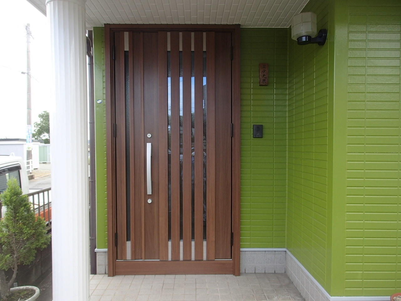 玄関ドアと勝手口ドアをリシェントに取替工事をされました。 色や形を考えてあるときにイメージ写真を作ってご提示しました。 家族会議の中で使っていただく材料になったと思います。出来上がりを見てご主人が「妻と娘の意見を聞いておいてよかった。」とおっしゃいました。イメージ写真なので完璧とはいえませんが、判断材料にはなり得ます。 ドアの取替をお考えの皆様是非ご相談ください♪